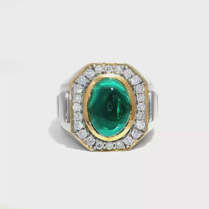 Silver Ring with Oval Cabochon Hydro-Emerald