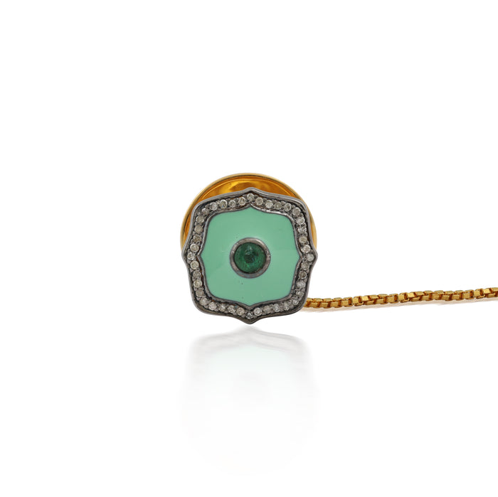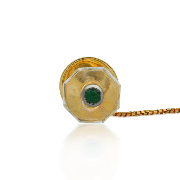 Zar – Emerald & Crystal Kurta Button Set in Gold Finish