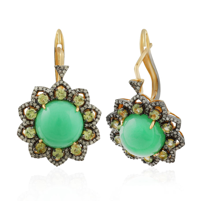 Victorian Bloom – Chrysoprase Drop Earrings with Peridot Halo & Diamond Accents
