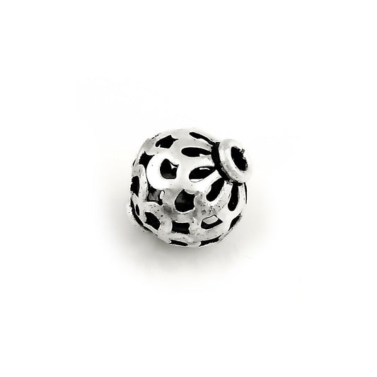 Round Silver Die Bead With Flower Design on Top
