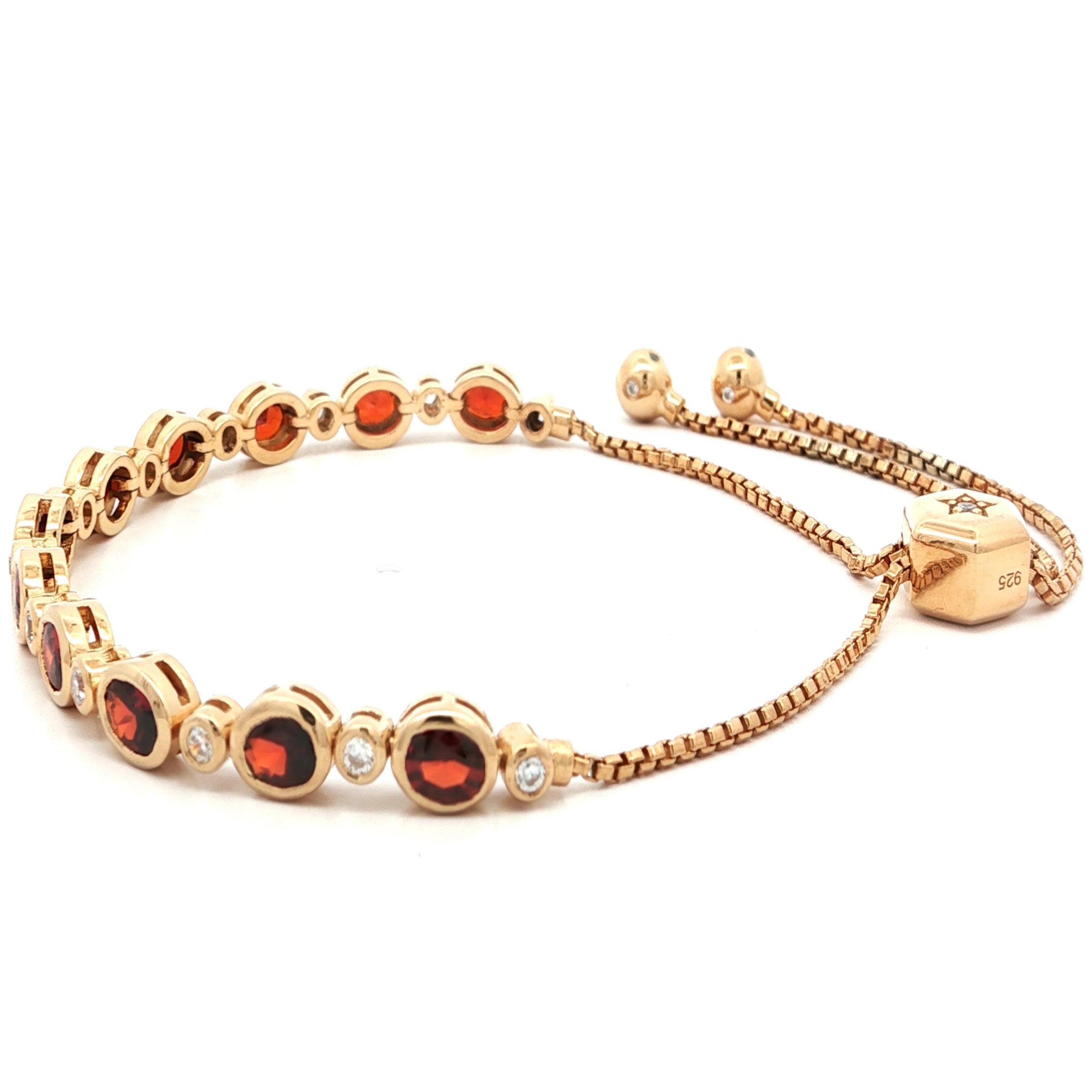 Yellow Rhodium Plated Silver Bracelet with White & Red Cubic Zirconia