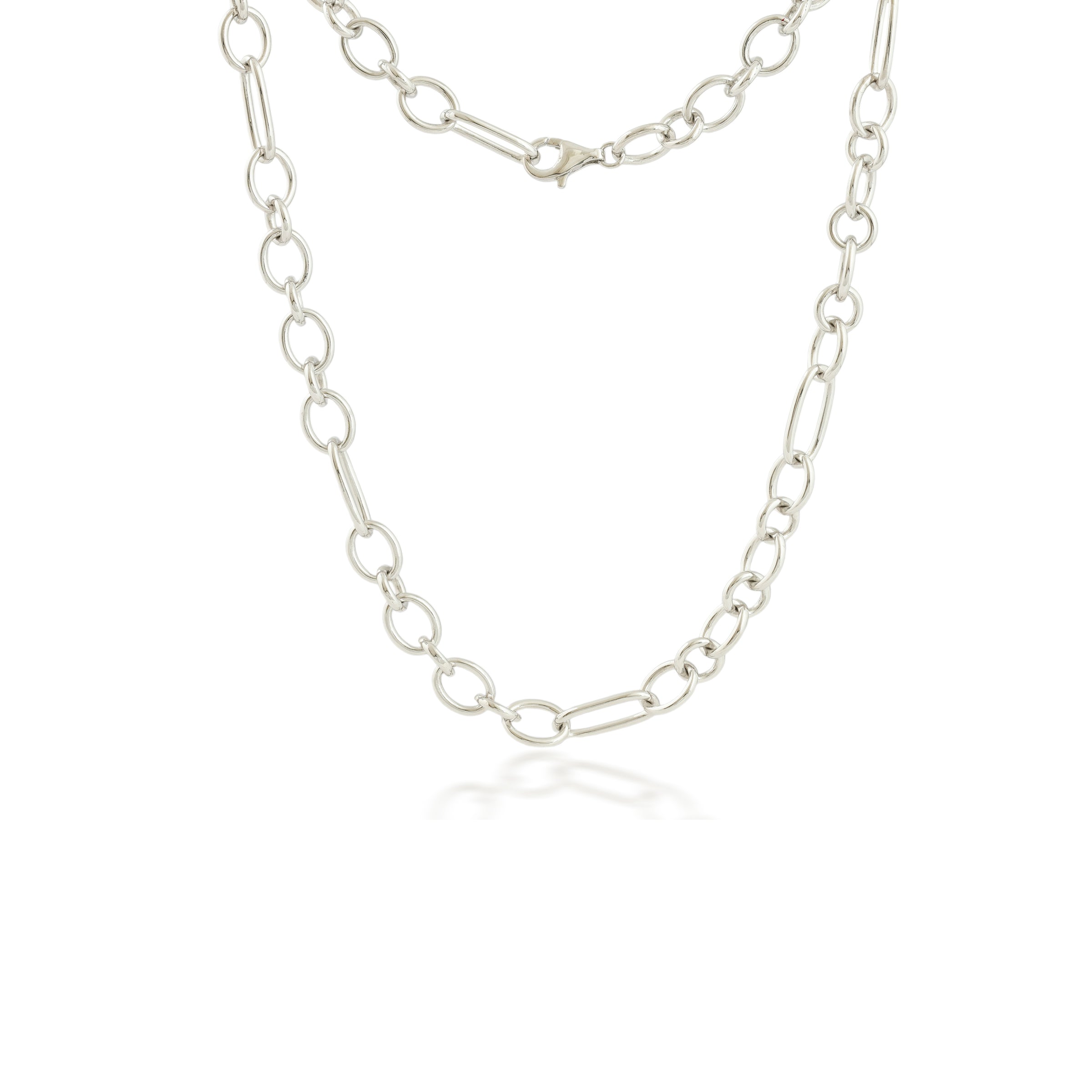 Engineered for impact and built for longevity, the Verve Jewels Anchor Chain Necklace is a modern essential designed for men who value strength, structure, and understated luxury. Crafted in premium 925 sterling silver, this 30-inch chain features a classic anchor link profile, alternating oval and elongated links that deliver a clean, architectural aesthetic with superior durability.