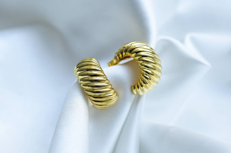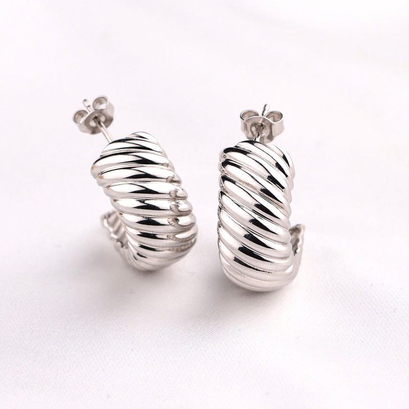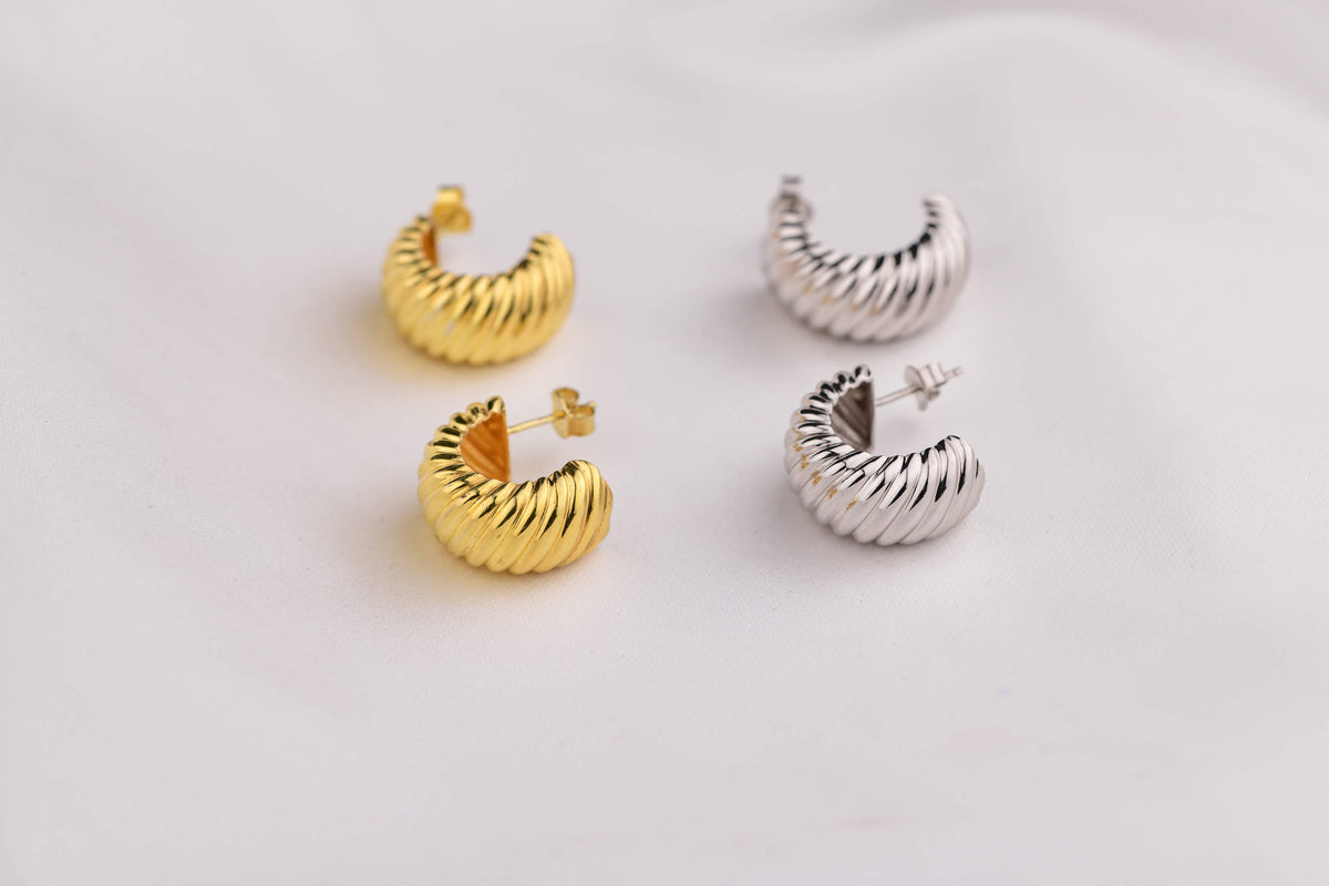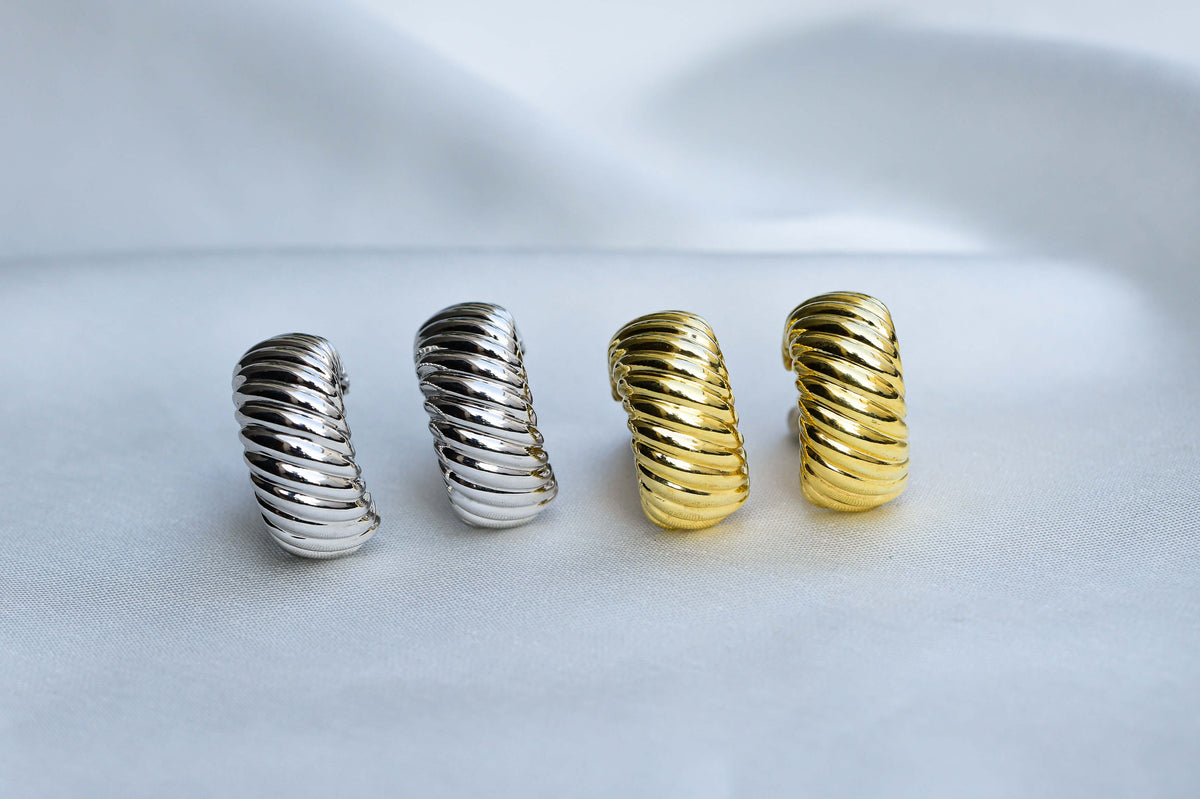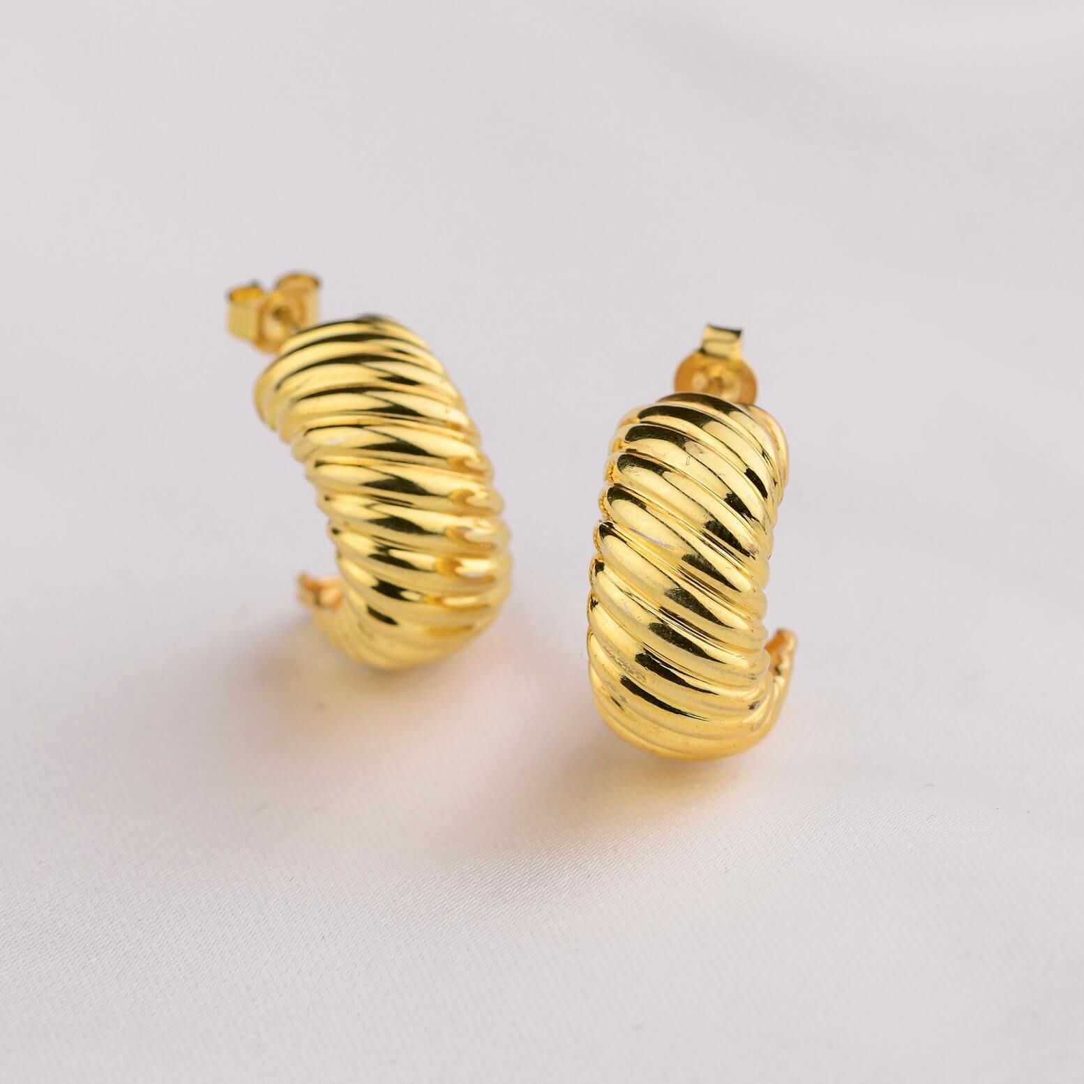 Silver Ridge Hoops are finely crafted 92.5 sterling silver earrings featuring an impressive 18k gold plated ridge detail to flaunt your 80's theme party look.