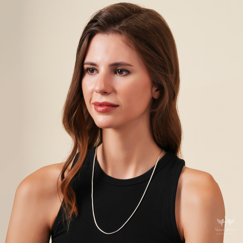 Styling Tips – Wear this silver snake chain for a clean and polished look or pair it with other chains to get that layered look. Pairs effortlessly with ethnic and western outfits.