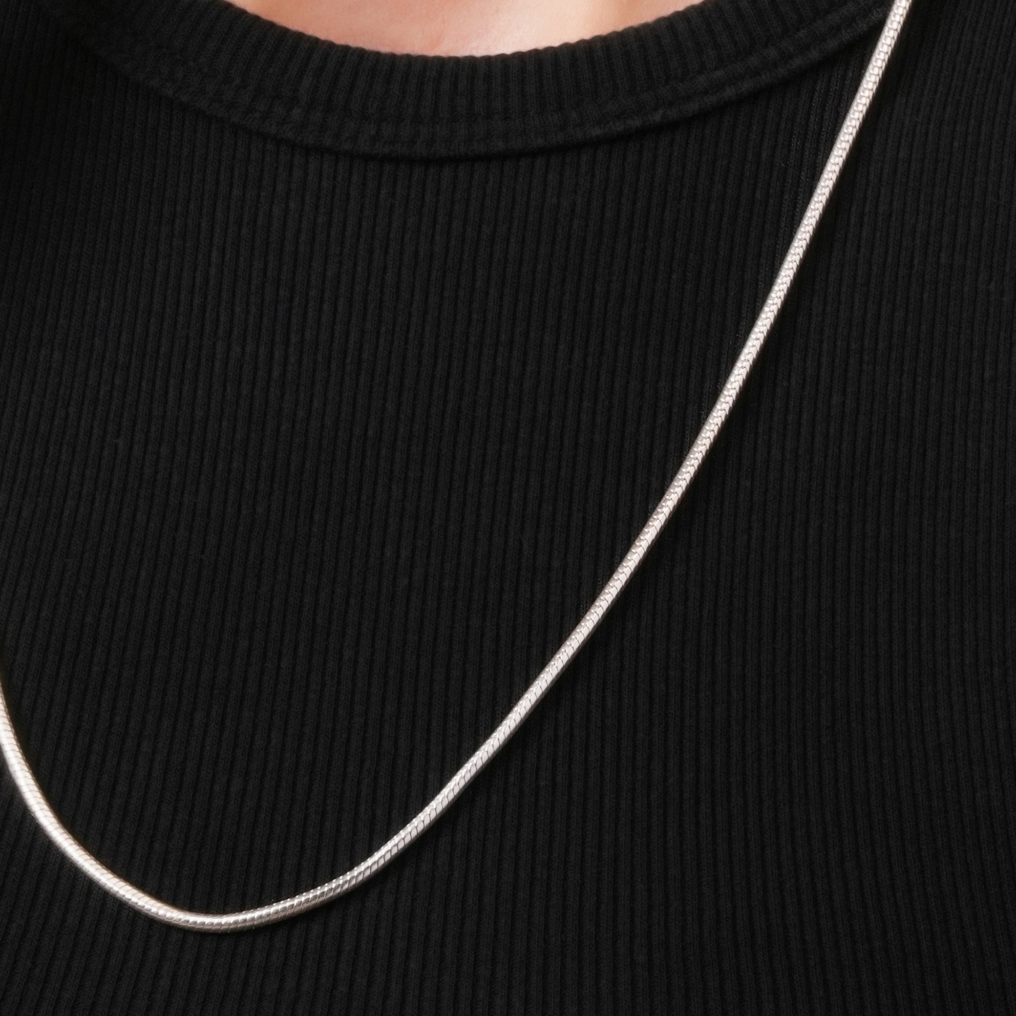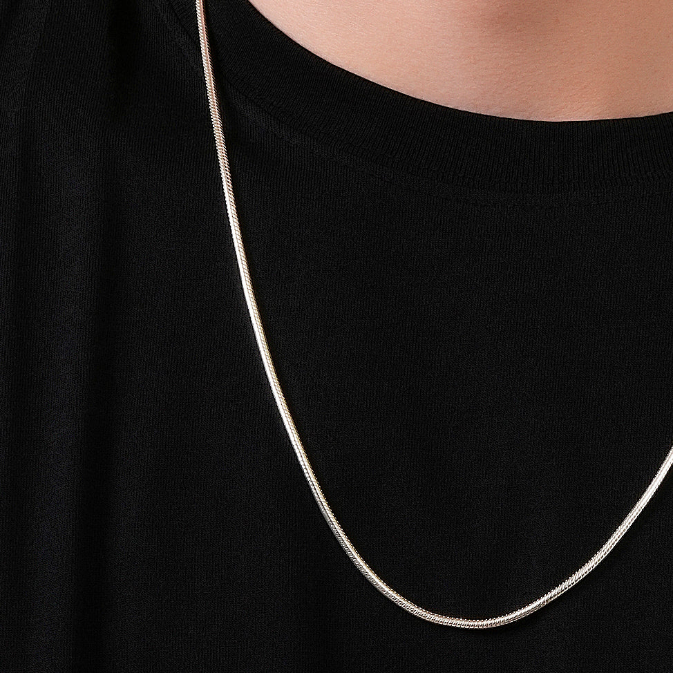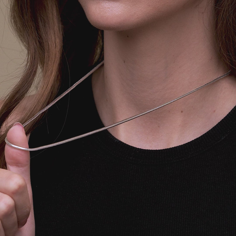 The Snake Chain Necklace is a perfect example of modern minimalism. The chain's smooth and rounded surface will add a graceful charm, offering a seamless finish that feels as luxurious as it looks. This silver chain is a versatile staple piece in any jewellery collection.