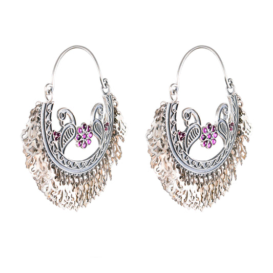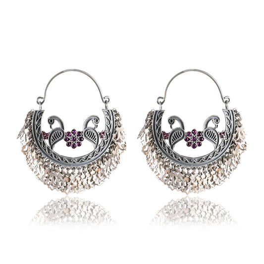 Silver Peacock Tribal Earrings