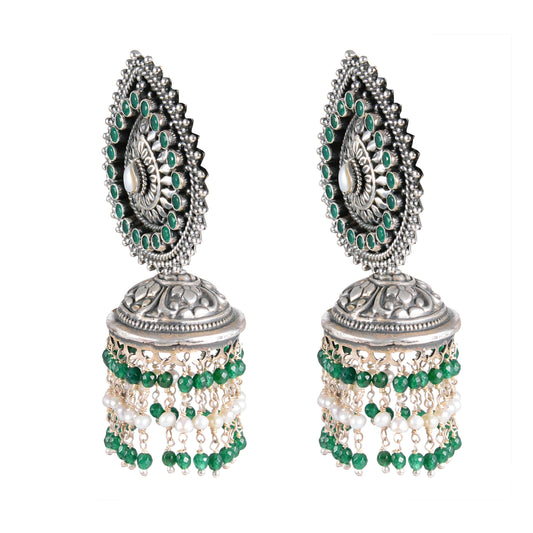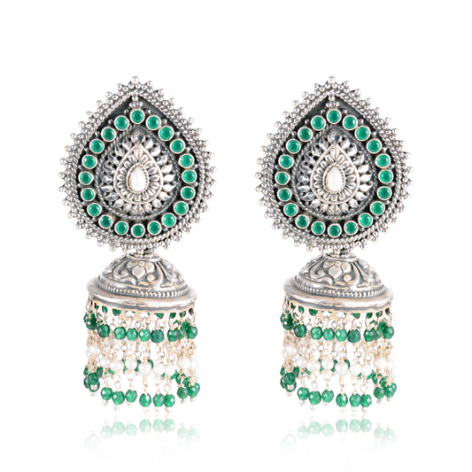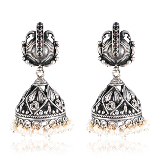 Jhumkas are a timeless piece of jewelry and have been around since the time of emperors. Earlier they were used to adorn deities, later on, worn by Bharatnatyam dancers, but now they are famous and being worn by women all around the world. We offer silver jhumkas online at the best prices. So what are you waiting for? Put on your best Indian outfit today, add some tint to your cheeks, and wear your favorite pair of sterling silver jhumkas. Buy silver jhumkas online of the best quality with us today. Get your best look on.