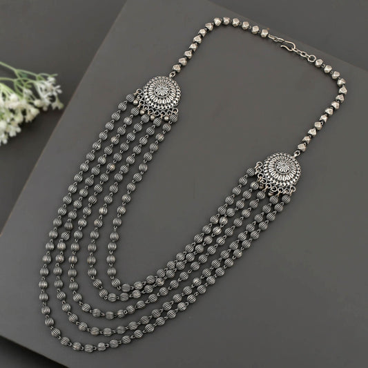 925 Sterling Silver 4 Line Beads Tribal Necklace