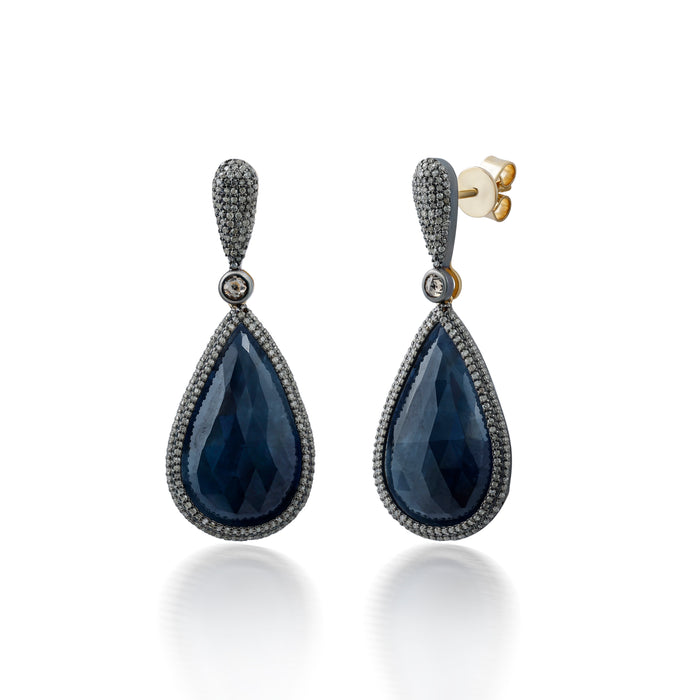 Celeste – Victorian Sapphire & Diamond Teardrop Earrings
