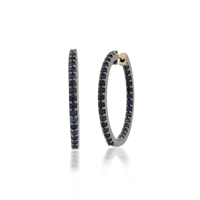 Midnight Halo – Sapphire-Studded Classic Hoop Earrings