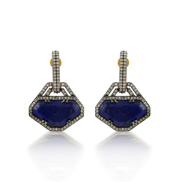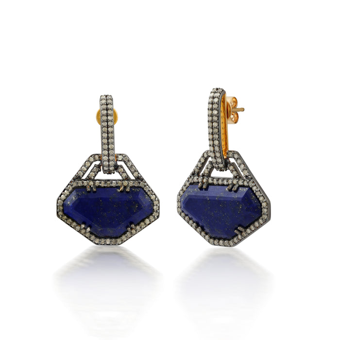 Cosmic Charm – Lapis Lazuli & Diamond Geometric Drop Earrings