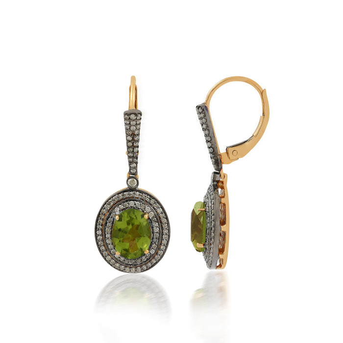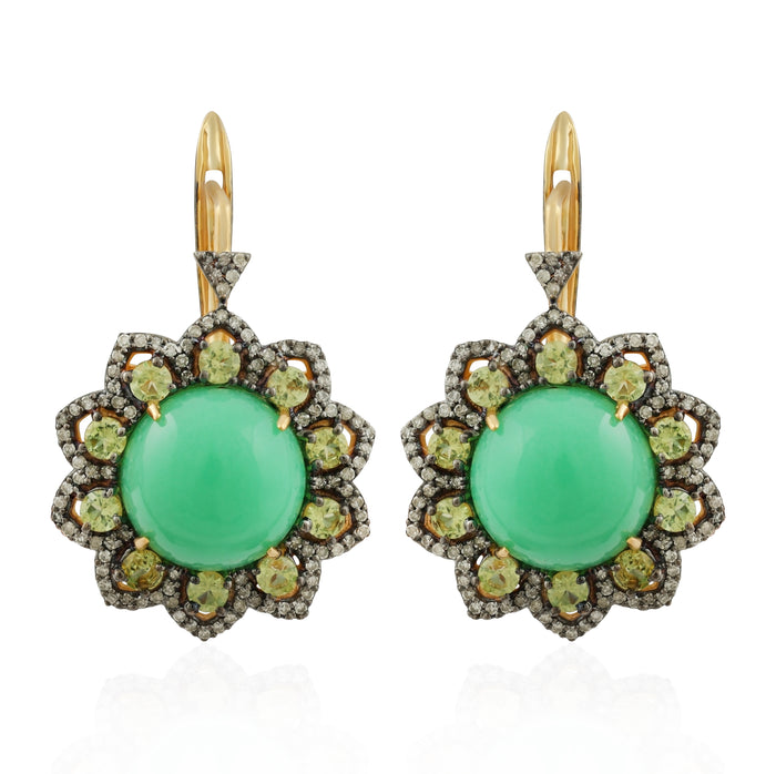 Victorian Bloom – Chrysoprase Drop Earrings with Peridot Halo & Diamond Accents