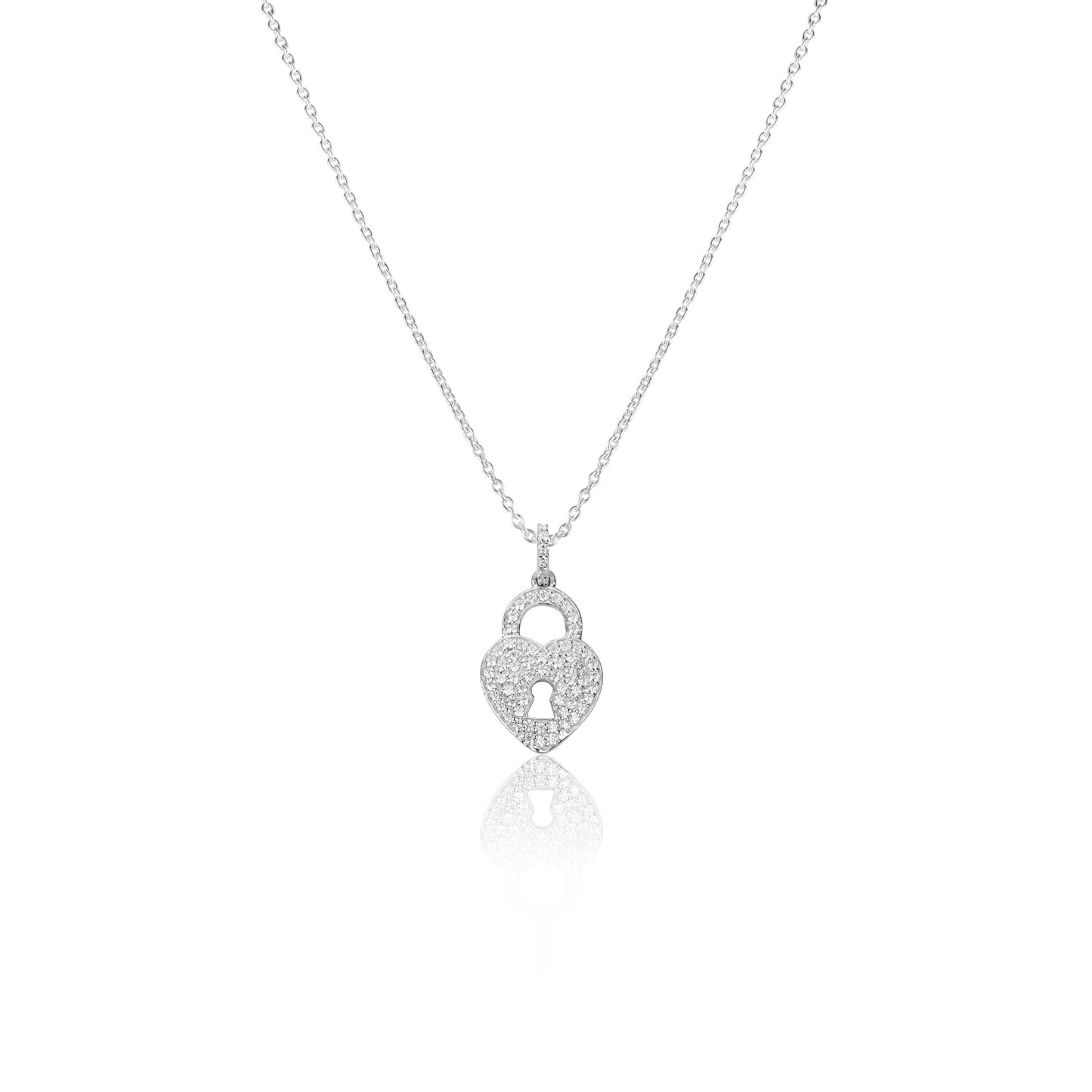 Delicacy Lock Heart Necklace is designed in hear lock shaped with dotted Swarovski stones along with 92.5 sterling silver. Wear it on occasion or daily this will grab the eye.