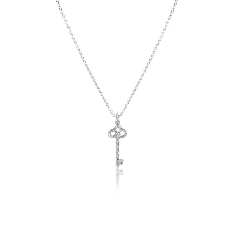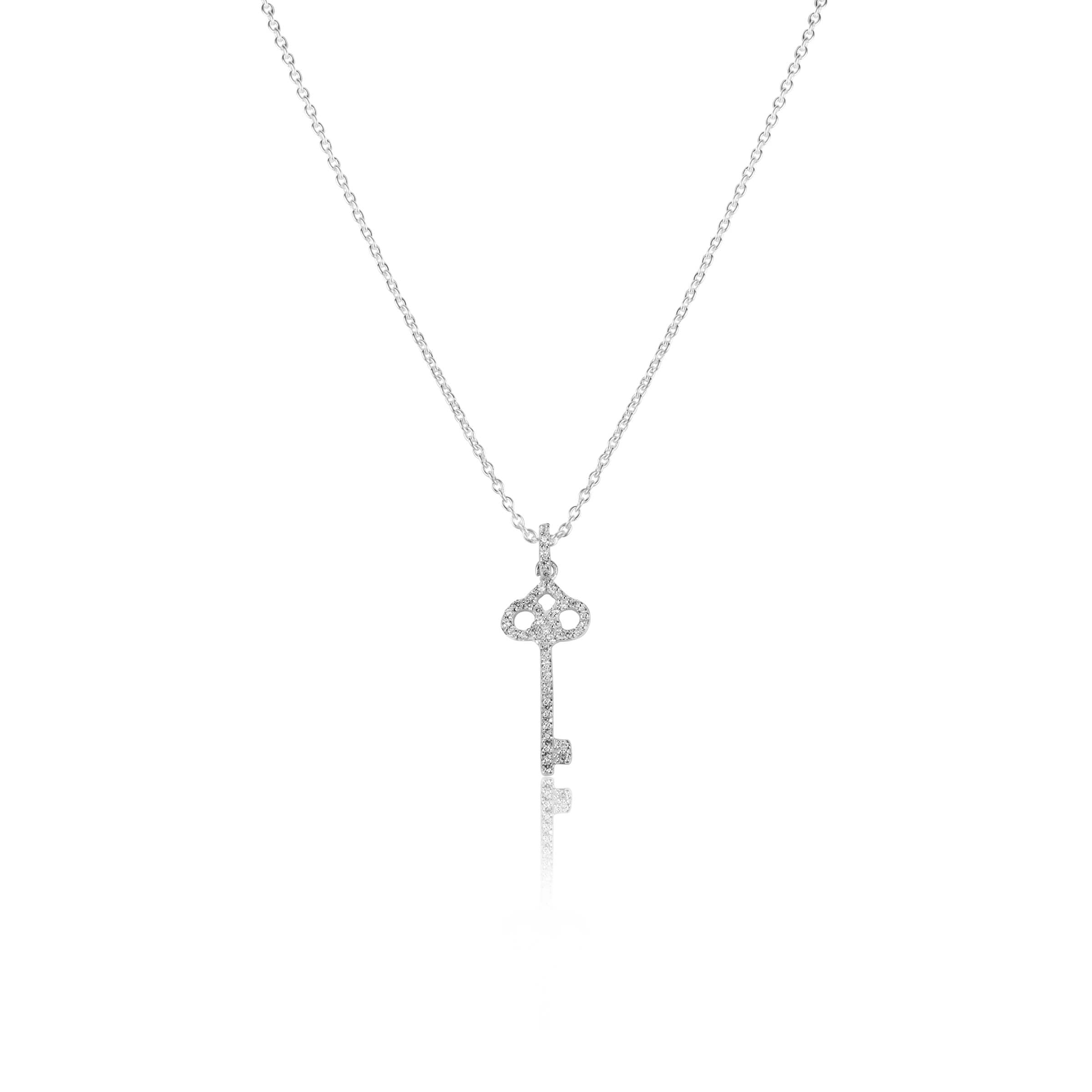 This Diamond Necklace is a symbol of entrusting someone with access to one’s heart. This necklace is designed with 92.5 sterling silver with an 18k gold plated chain.