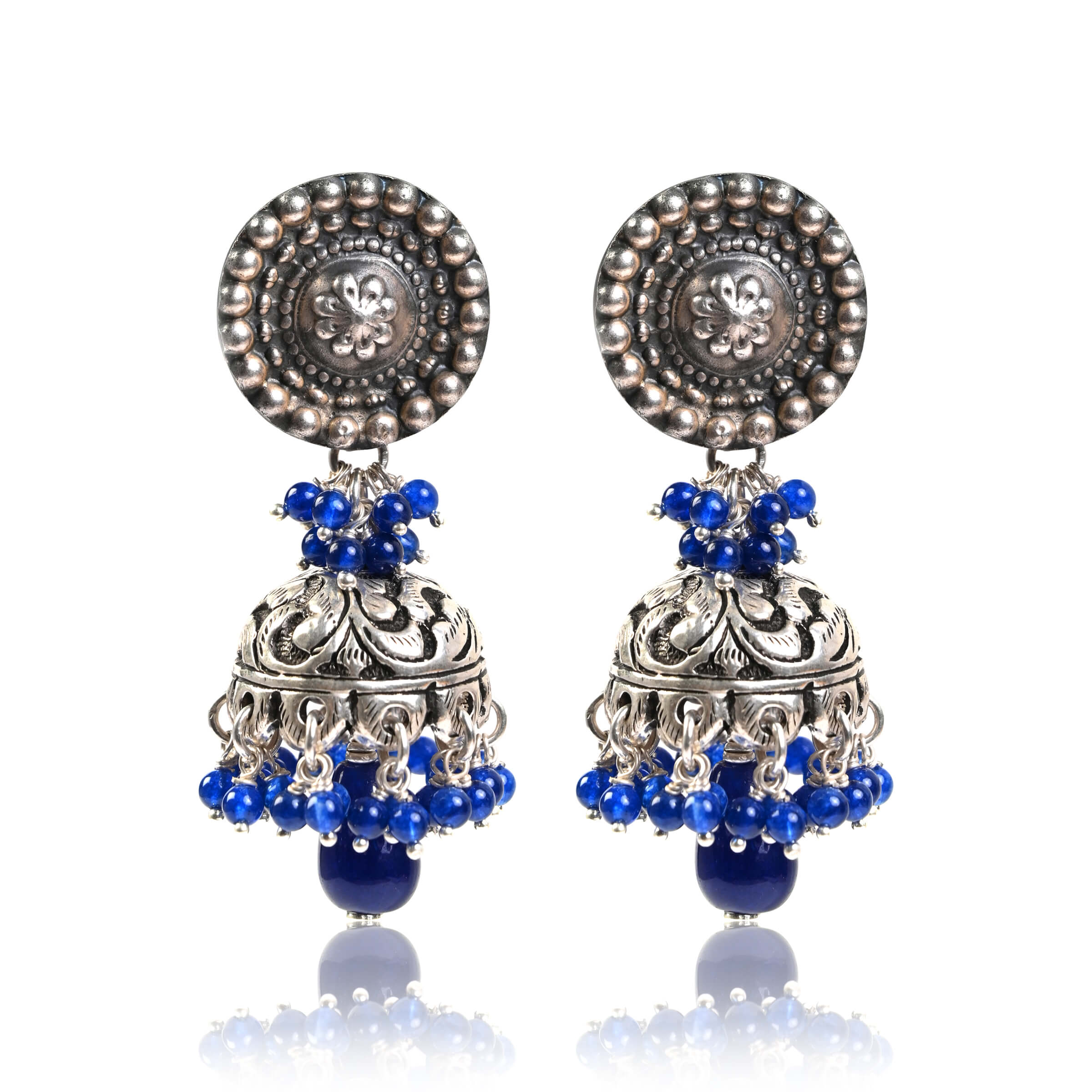 This earring is made up of a sterling silver base with an oxidised finish with blue small beats. This made with love and lead-free and nickel-free standards care