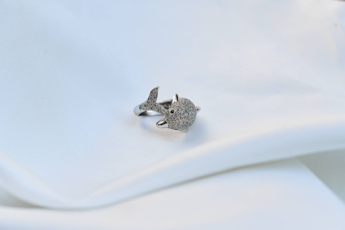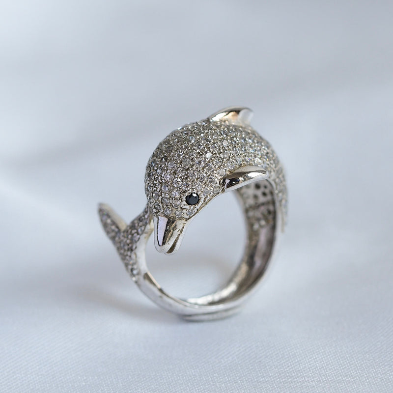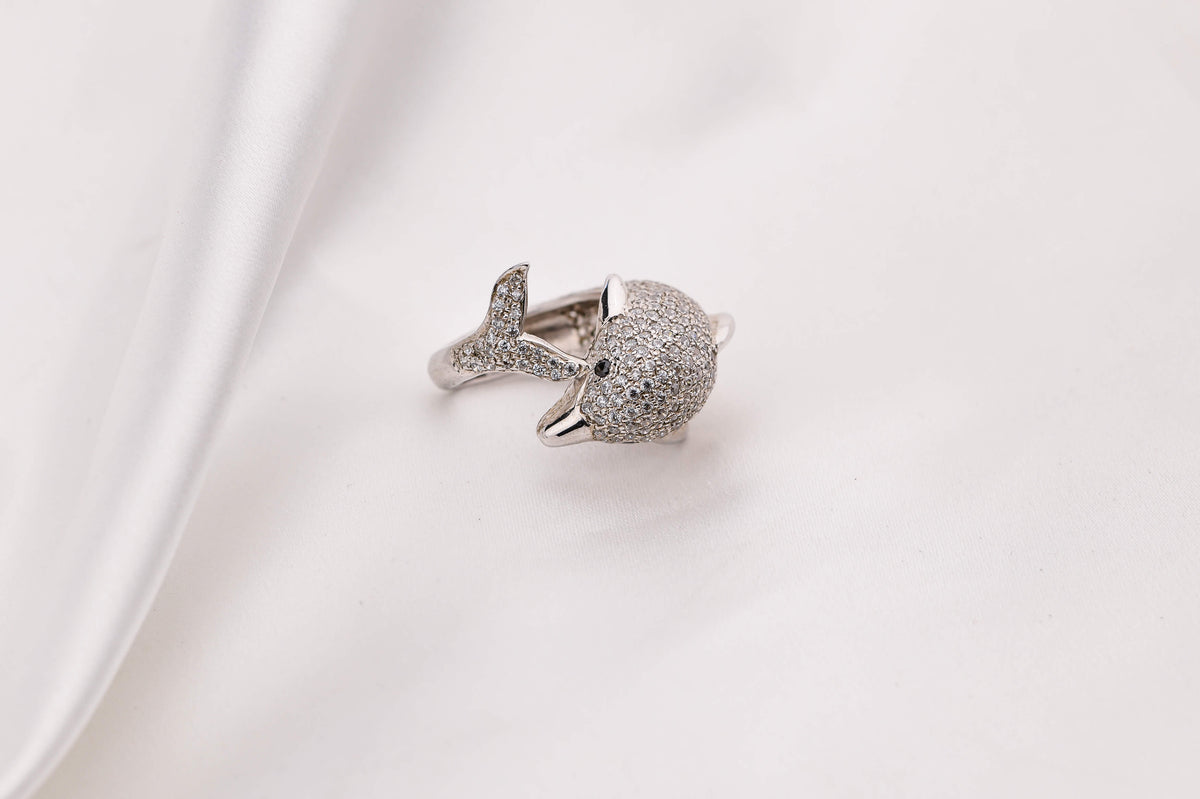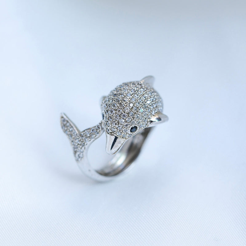 The magnum of jewels, dolphin-shaped mary ring acquires most of the fingers visible easily from afar gaze. The ring flaunts Swarovski crystals covering every bit of this 92.5 sterling silver dolphin-shaped ring that tunes well with heavy attires.