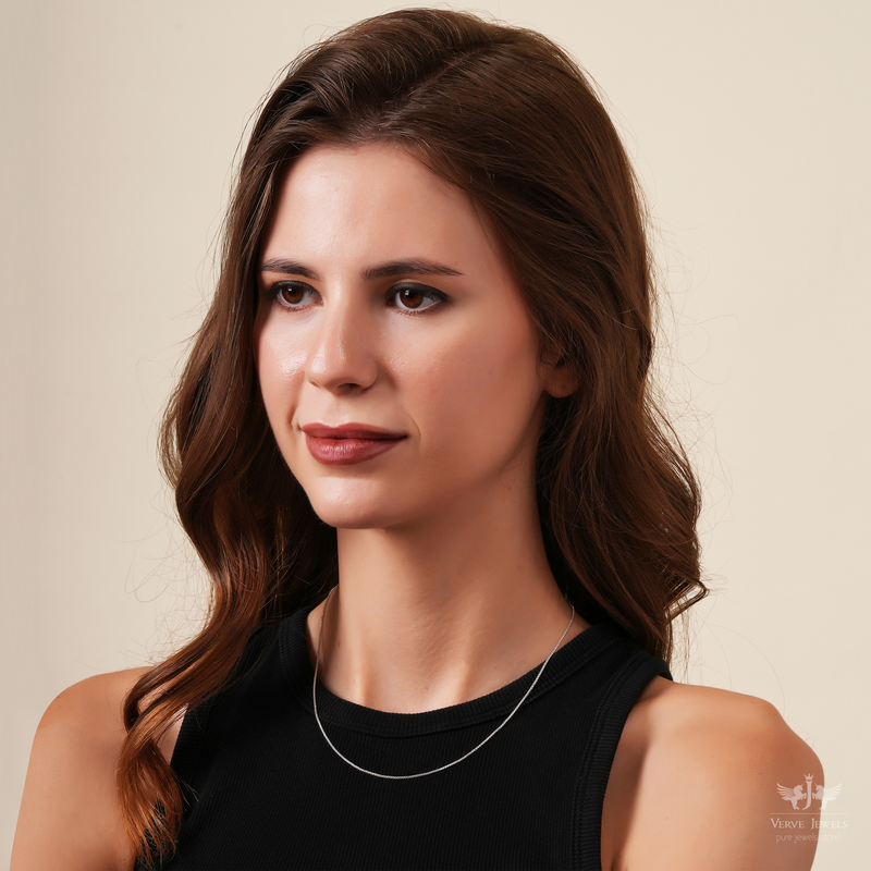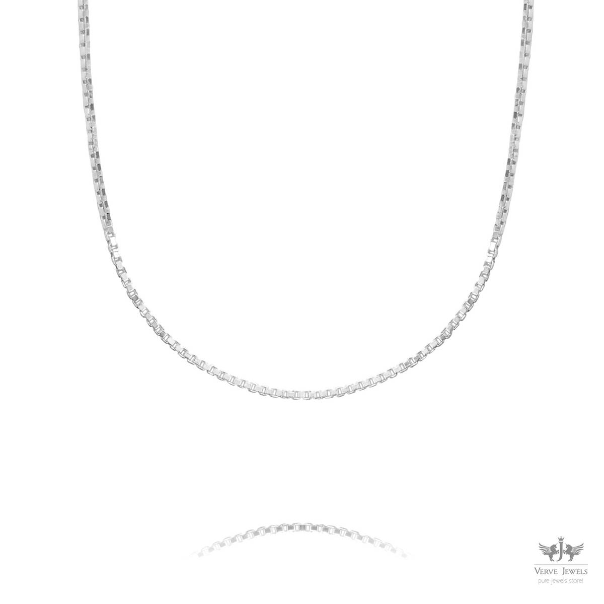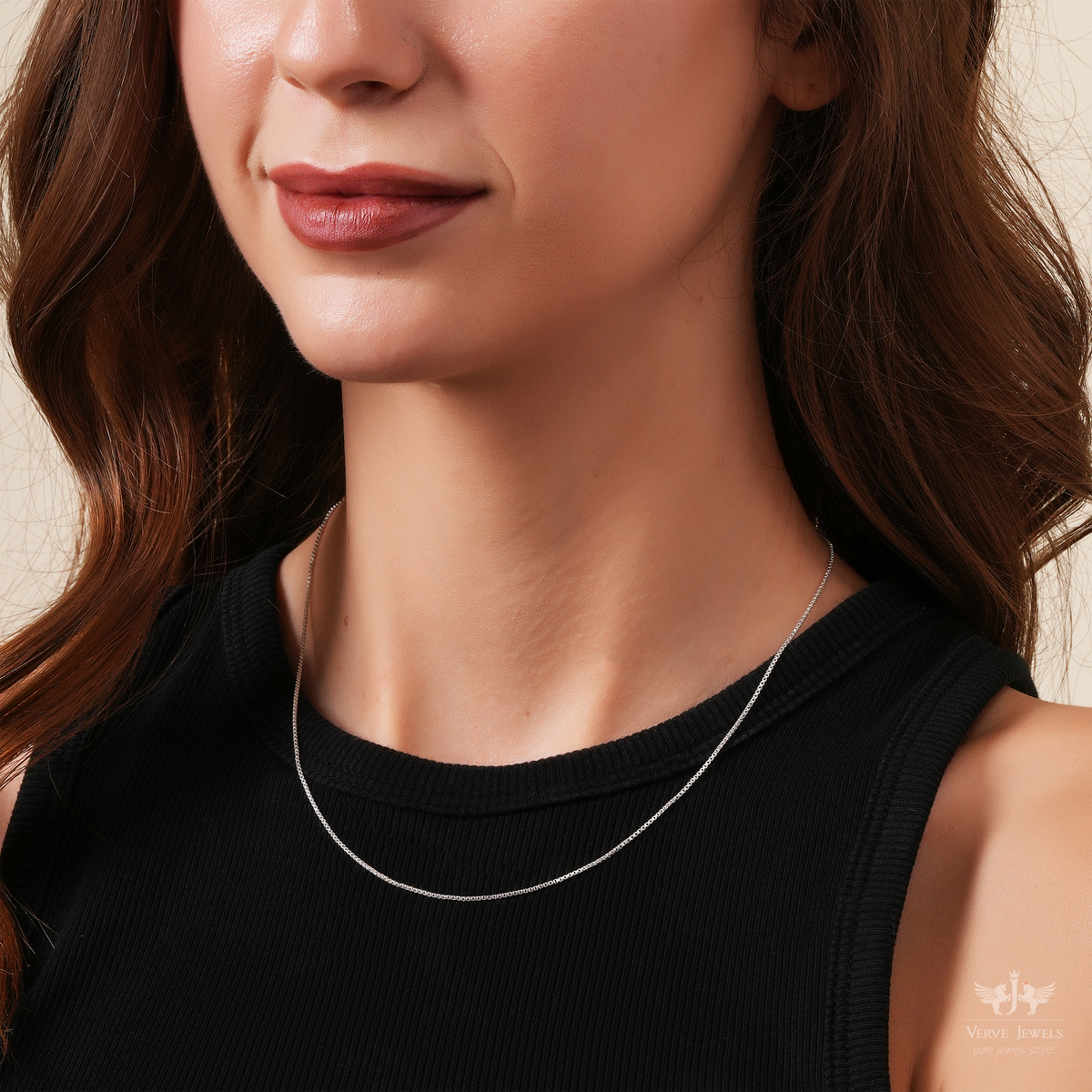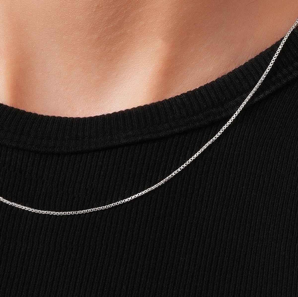 The Box Chain Necklace is a modern classic that fits right into any wardrobe. With the clean and square links, this 1.1mm chain adds just the right amount of shimmer without being over the top. Whether you're dressing up for the office, heading out for a casual outing, or layering it with your favourite silver necklaces.