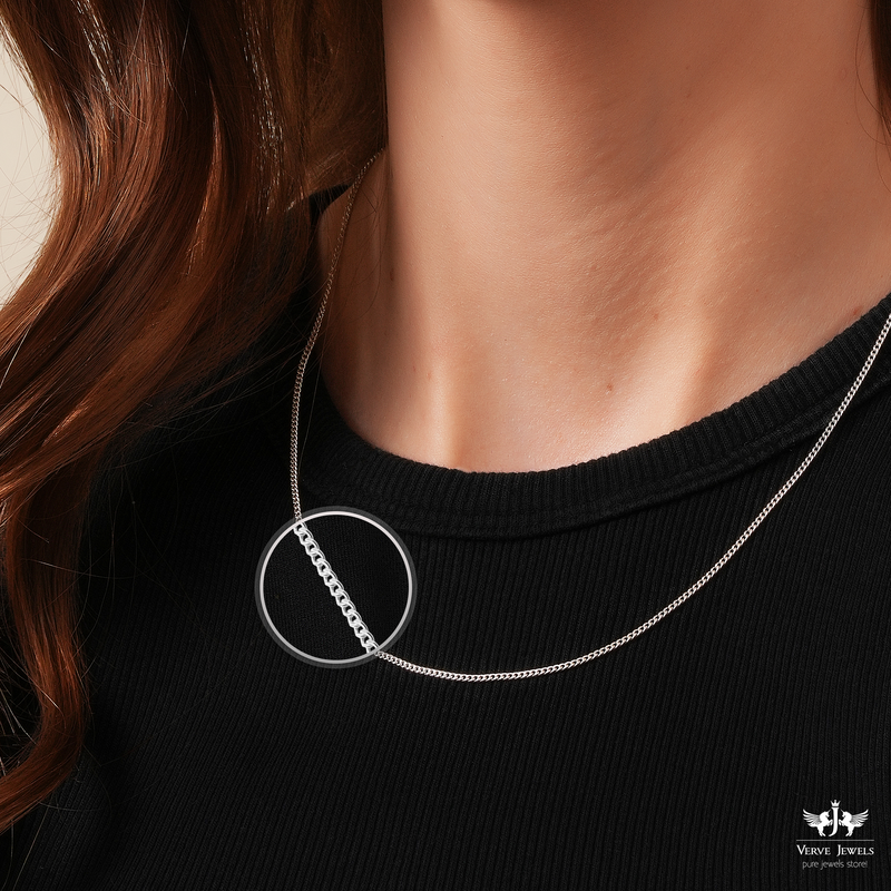 Styling Tips – Wear this silver chain for a clean and polished look or pair it with other chains to get that layered look. Pairs effortlessly with ethnic and western outfits.