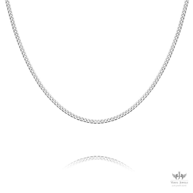 The Curb Chain Necklace is a timeless piece of jewellery with a modern twist. It's basically flat with interlocking links that lies smoothy against the skin. Whether you're dressing up or keeping it all casual, this silver chain can effortlessly elevate your style.