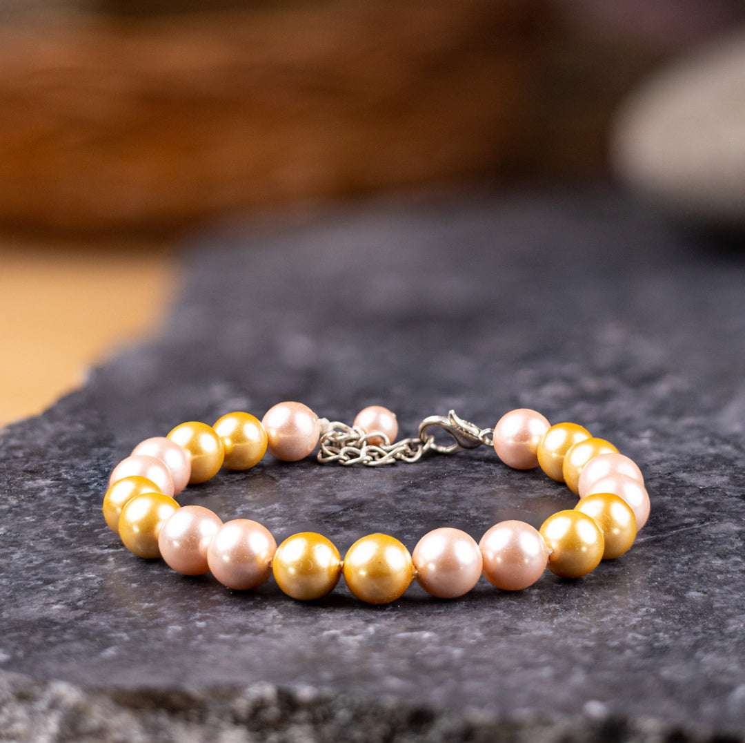 A perfect amalgamation of beauty, elegance and minimalism, our Shell Pearl Bead Bracelet looks perfect with your ethinic and western outfits complementing each other. The two colors blush pink and gold gives it the aesthetic look that you have been looking for. The durable polish all over this bead bracelet keeps your favorite jewellery unmatched for years to come.