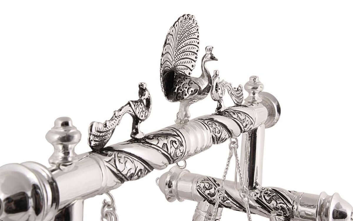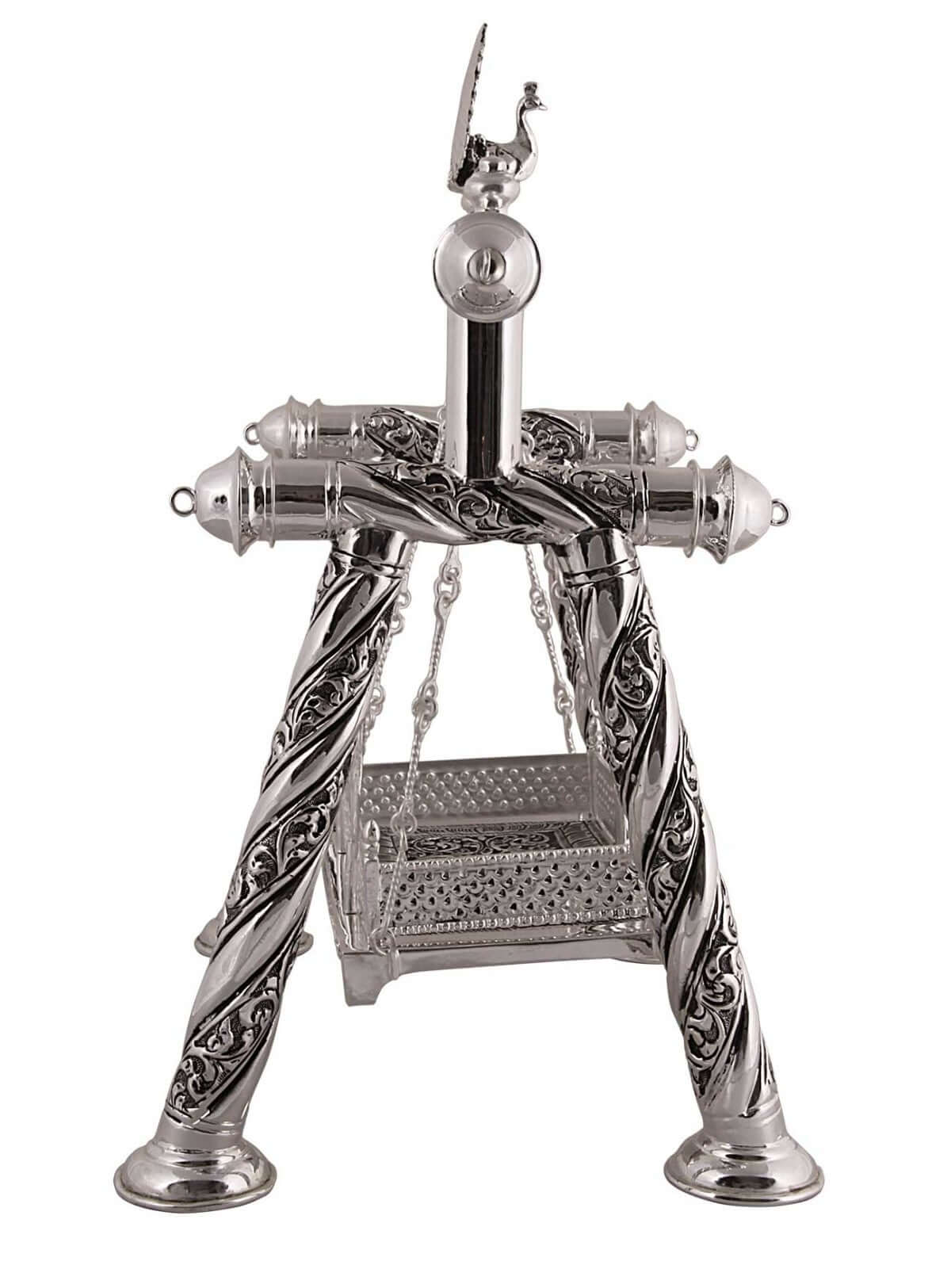Antique Jhoola with state-of-the-art design and grand finish. Aesthetically pleasing and very charming piece. dimension : Jhula Stand - Height 55 cm, Width 35 cm, Jhula - Height x Width x Length 16.5x11.5x14.5 cm