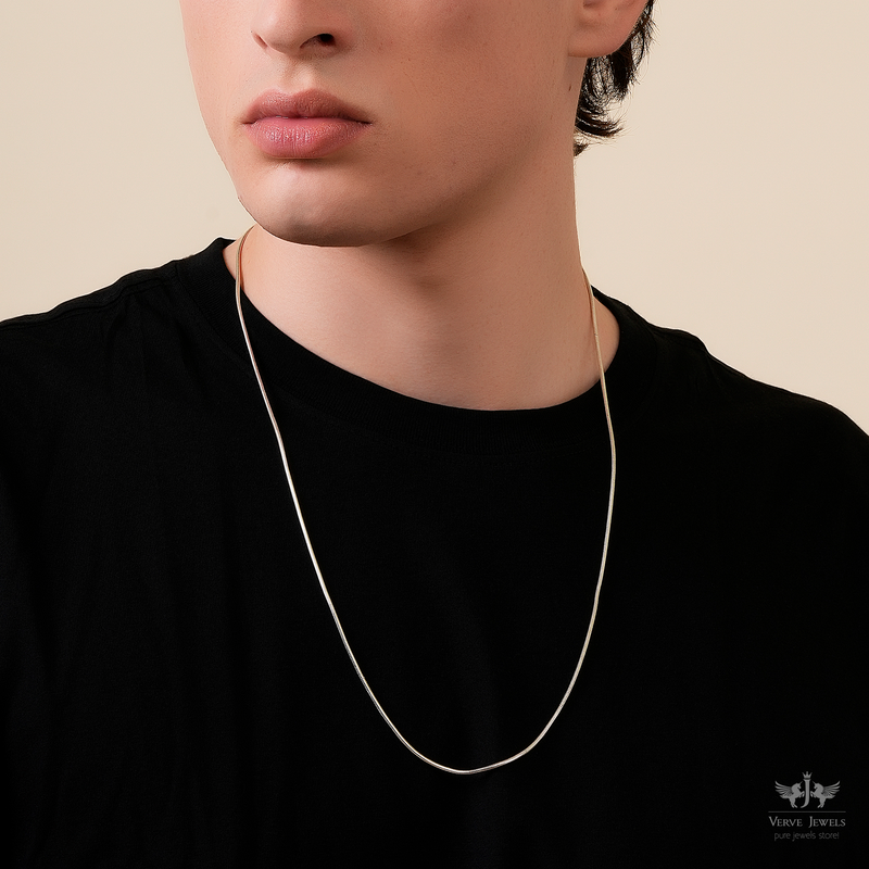 The Snake Chain Necklace is a perfect example of modern minimalism. The chain's smooth and rounded surface will add a graceful charm, offering a seamless finish that feels as luxurious as it looks. This silver chain is a versatile staple piece in any jewellery collection.