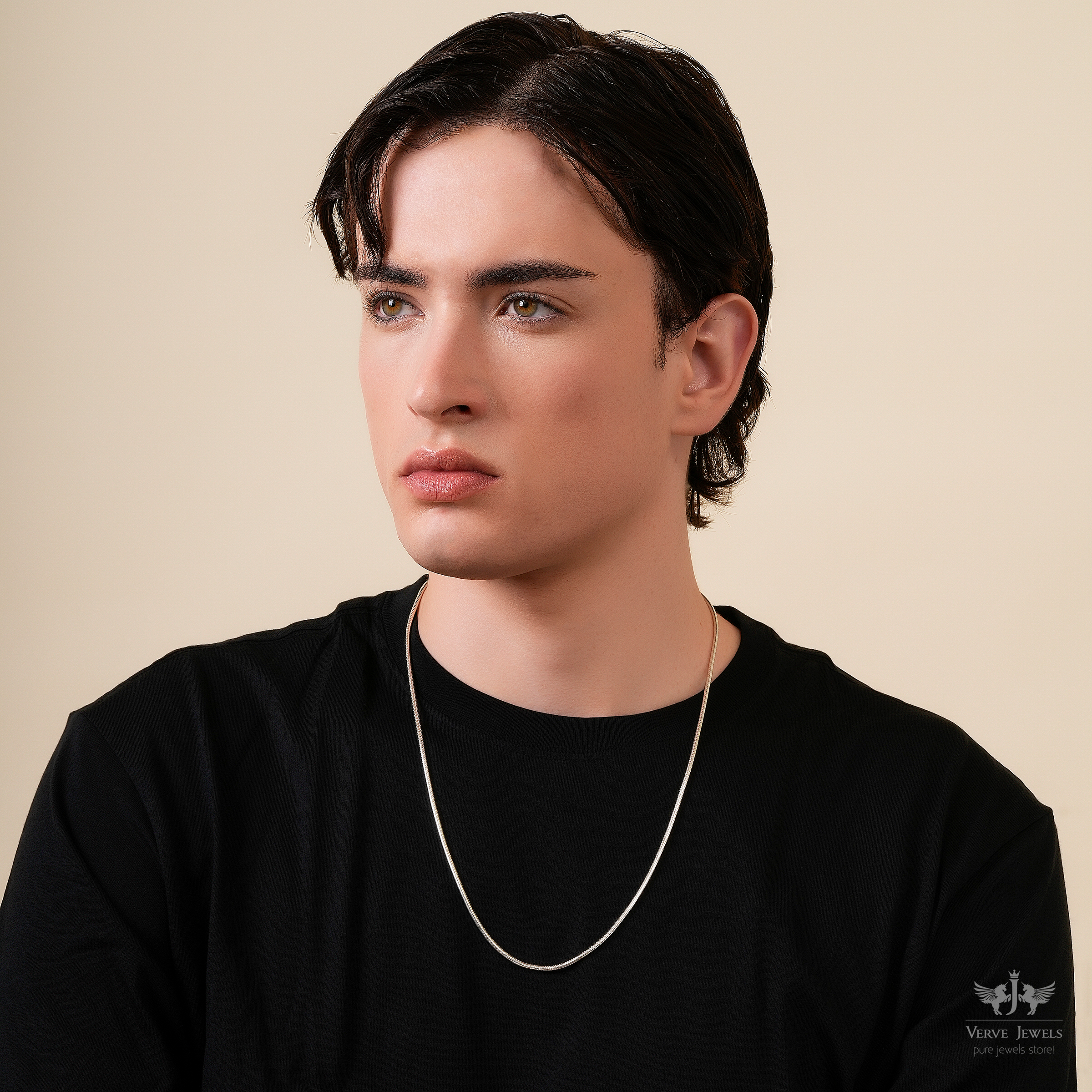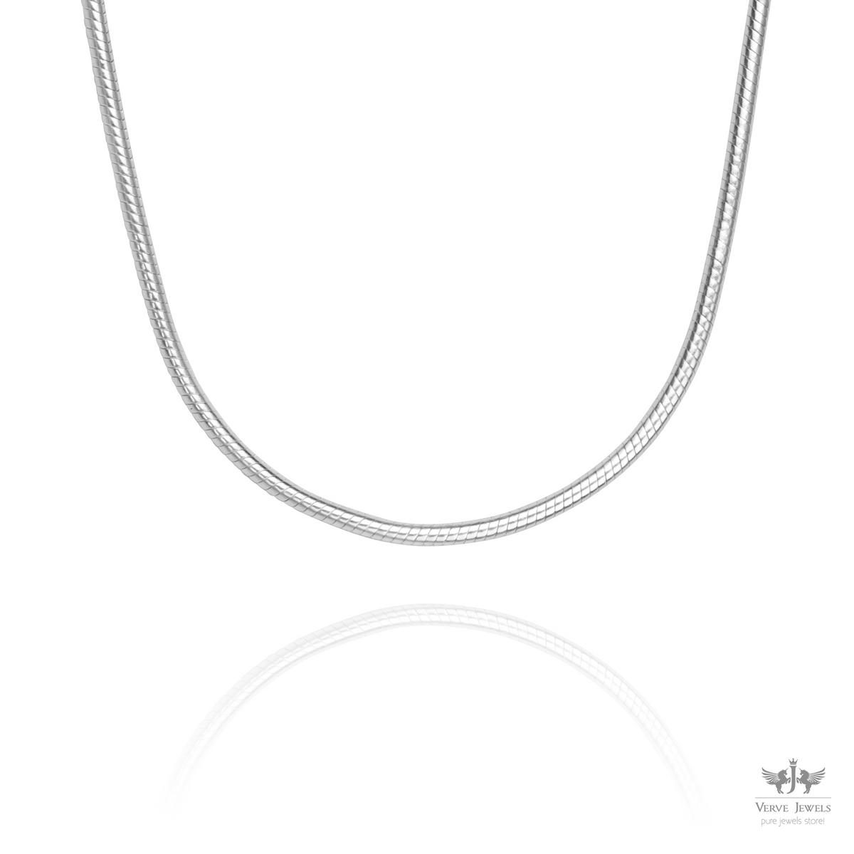The Snake Chain Necklace is a perfect example of modern minimalism. The chain's smooth and rounded surface will add a graceful charm, offering a seamless finish that feels as luxurious as it looks. This silver chain is a versatile staple piece in any jewellery collection.