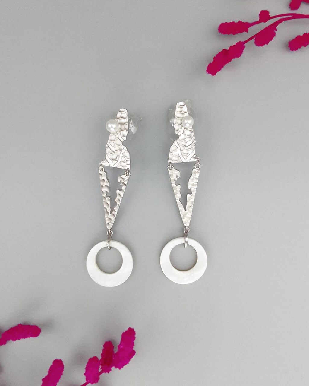 Structured V-shaped round chandelier silver earrings make your moment a big Wow. Try and slay with these styles for modern outfits.