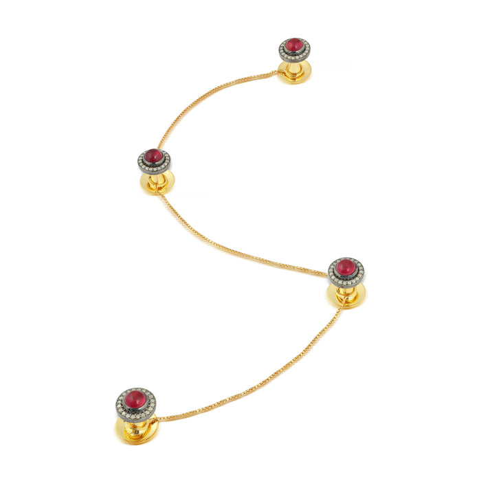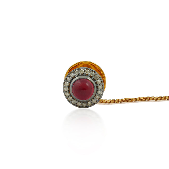Amora – Ruby & Diamond Halo Pendant in Gold