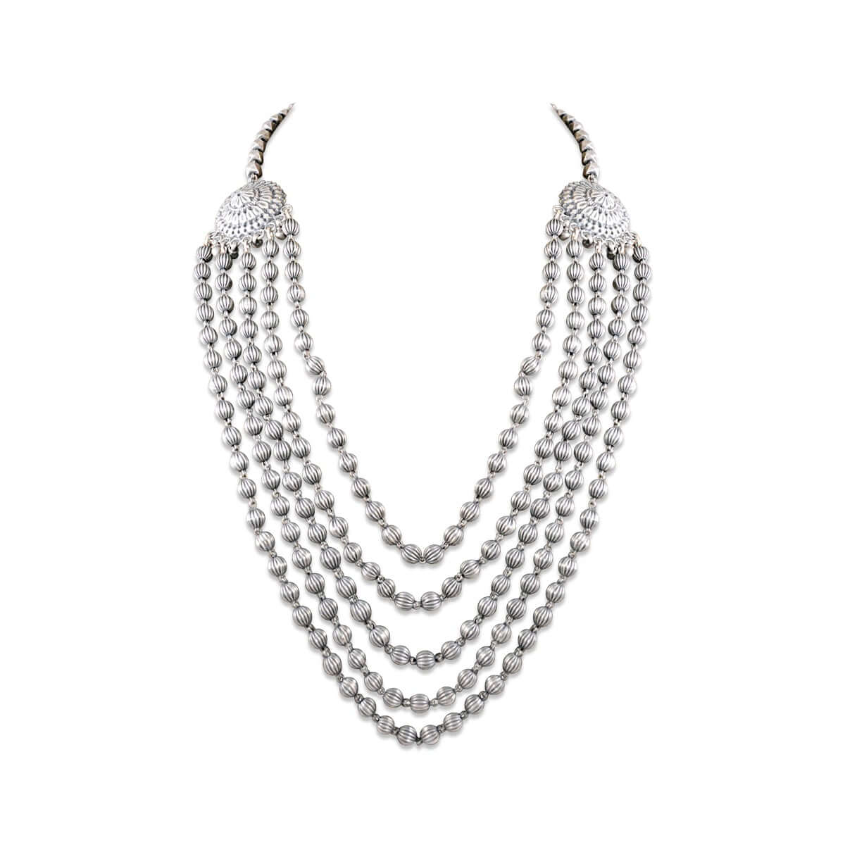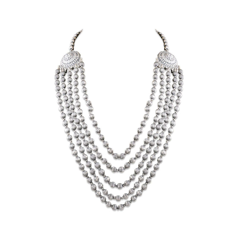 This 4 line silver beaded necklace does not need any pendant to enhance its beauty. Elevate the looks of even a simple saree or suit with this incredibly charming 925 Sterling Silver 4 Line Beads Tribal Necklace. This necklace can also be used greatly for gifting purposes and even at the welcome ceremony of premium guests.