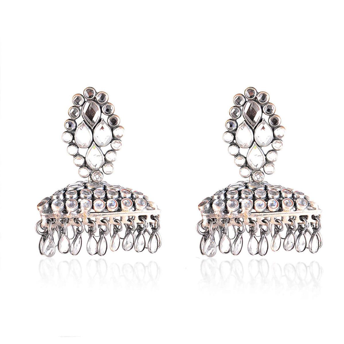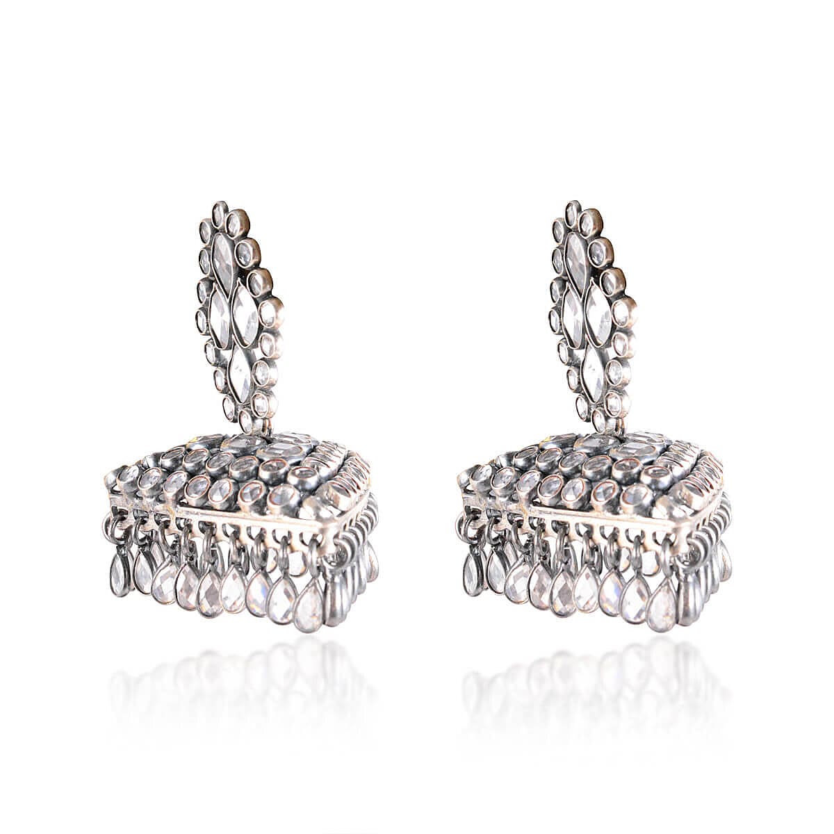This earring is crafted with crystal stone all over it with a pure silver base material. Wear it daily or occasionally ti will charm your look every time