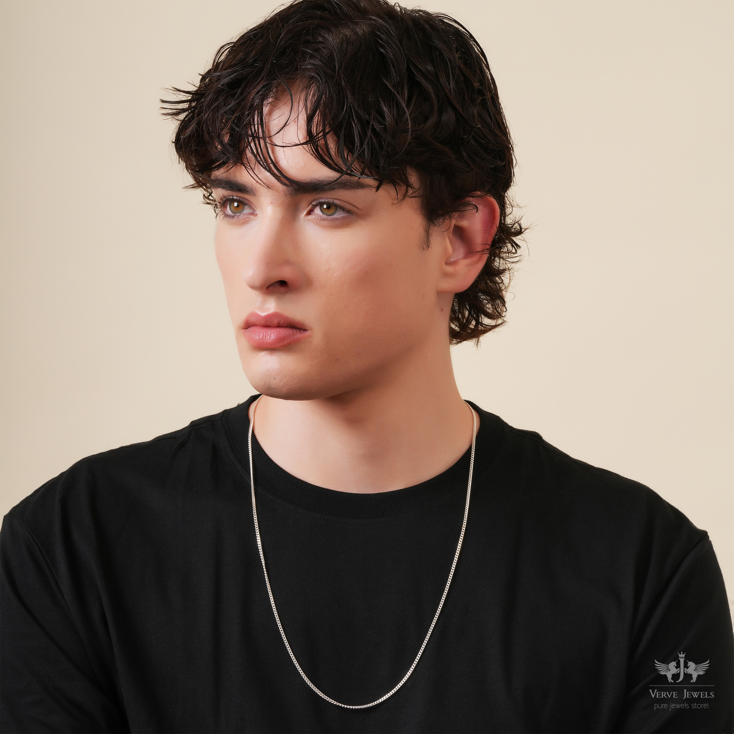 The Curb Chain Necklace is a timeless piece of jewellery with a modern twist. It's basically flat with interlocking links that lies smoothy against the skin. Whether you're dressing up or keeping it all casual, this silver chain can effortlessly elevate your style.