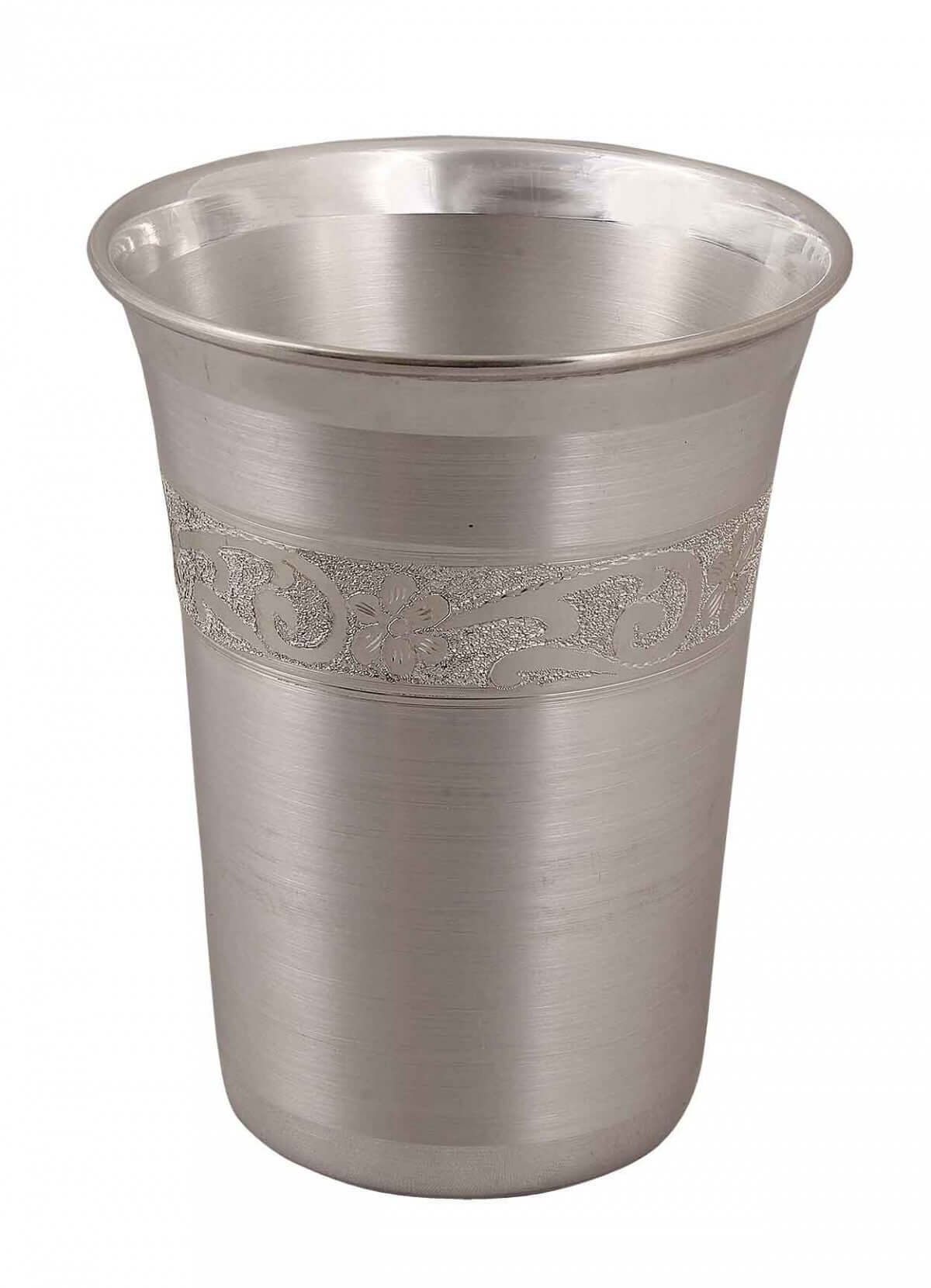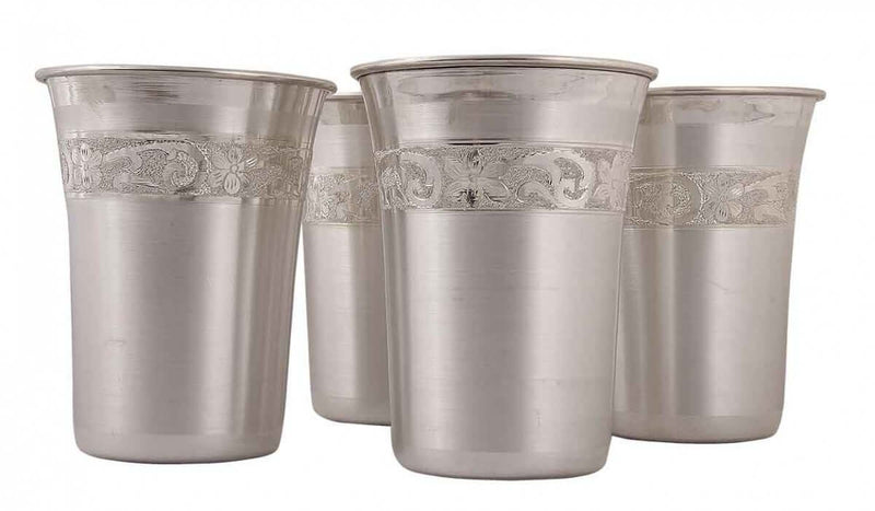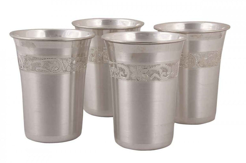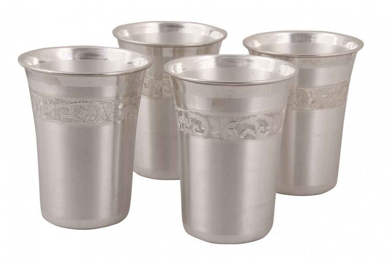 Silver is considered as an auspicious metal. This set of glasses is made in pure silver and is matt polished from inside and outside. The length and diameter for the glass are ideal for household usage. The glasses are decorated with intricate paisley design patterns that are adding glamour to the product. This can be an ideal gifting option as well.