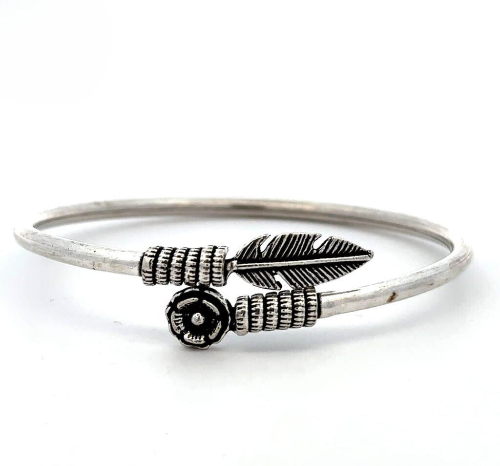 With the great feather style oxidized bangle look stylish every day and everywhere you go. They are made of pure silver and come with a guarantee of great quality.