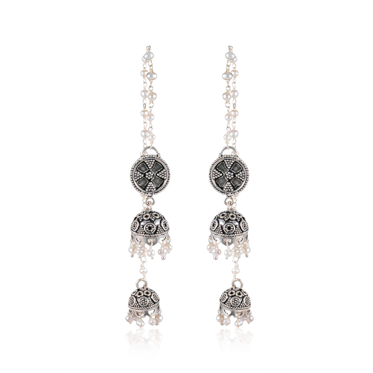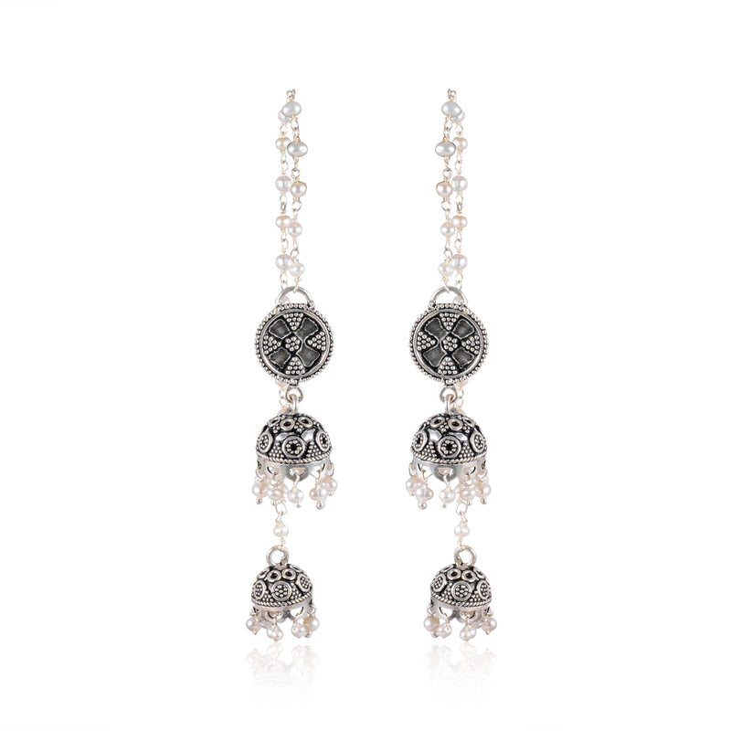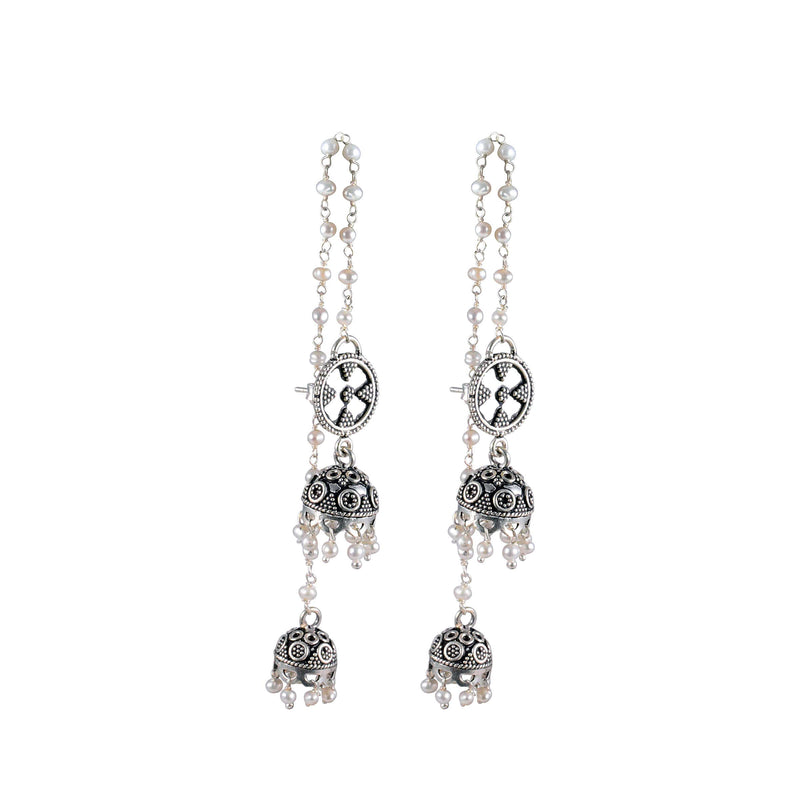 Pearl Chain Silver Earrings