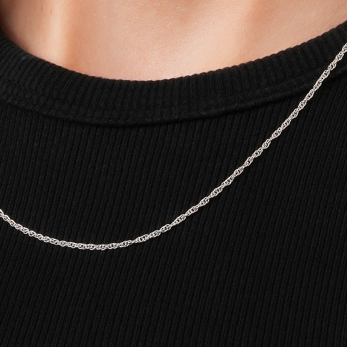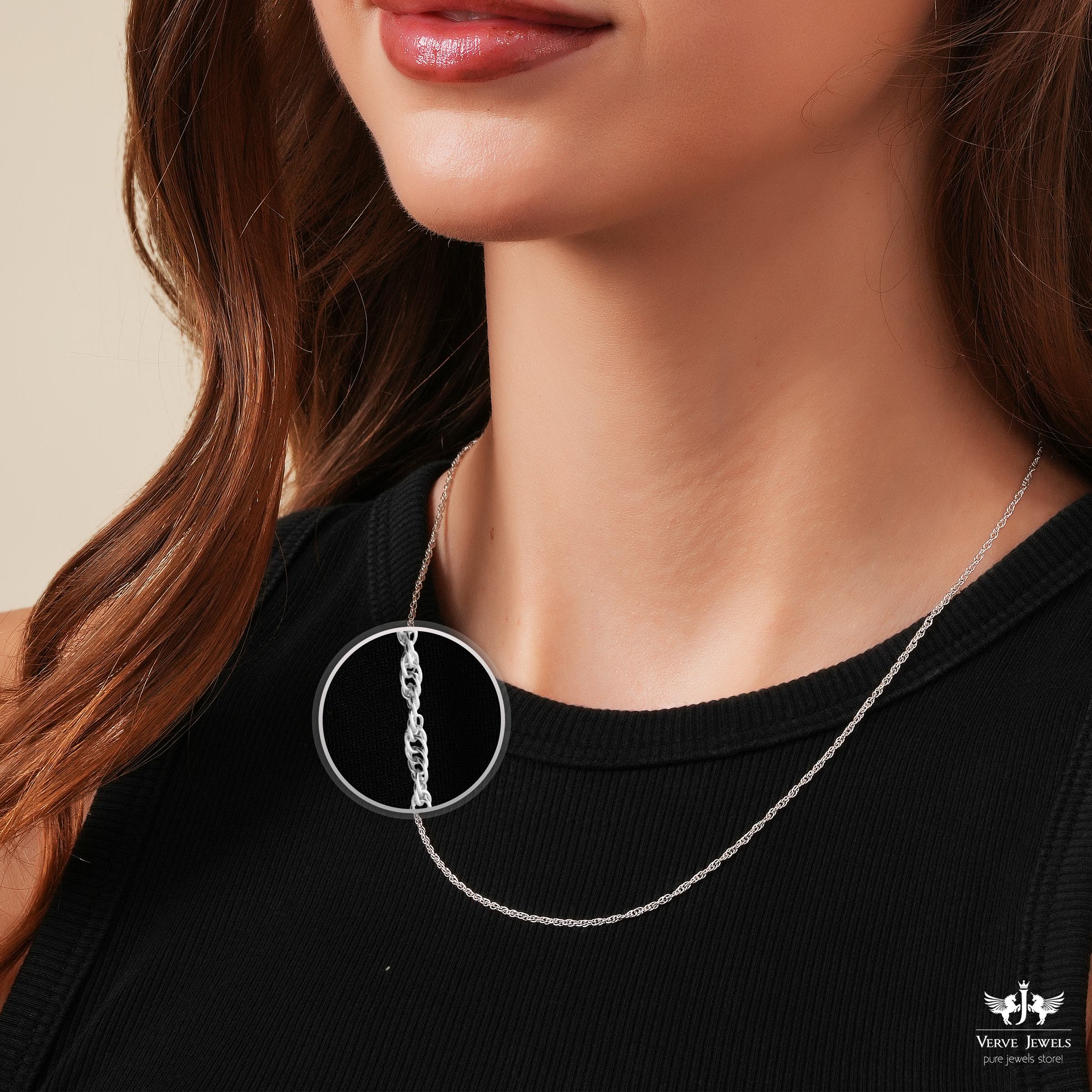 The Rope Chain Necklace is a timeless classic, perfect for modern minimalists. It's silver twisted design, creating a textured finish that basically catches the light from every angle. Whether worn as a standalone piece or layered with other chains, it adds a touch of shimmer to any look.