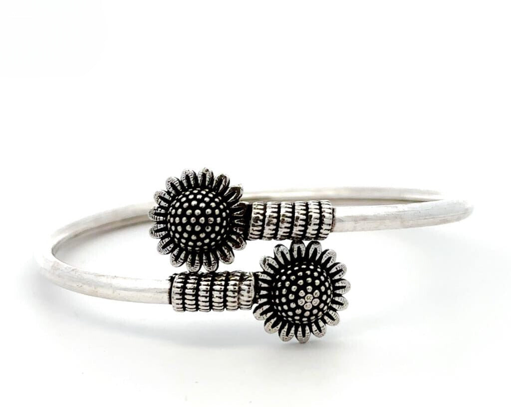 Feel like a queen bee with an amazing sunflower-shaped silver bangle on your hand. This looks fashionable and classy with every outfit of yours.