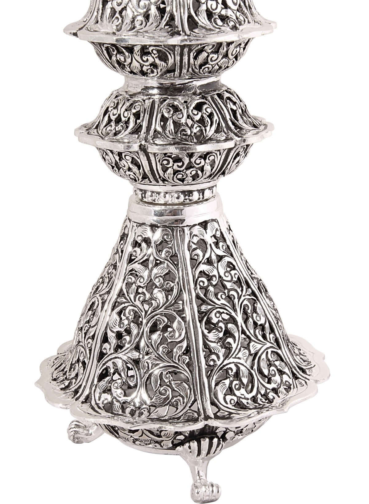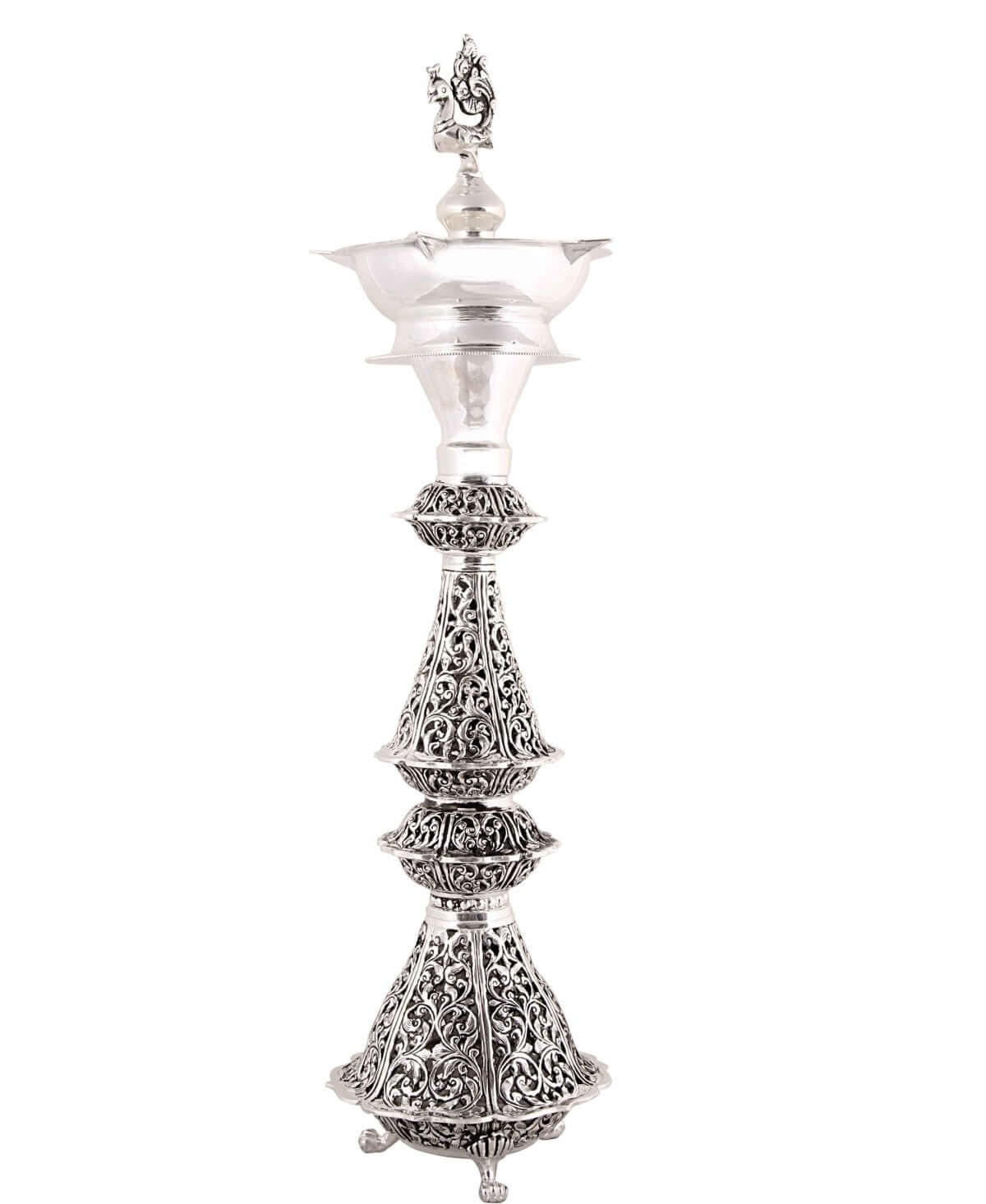 With Traditional Silver Narthaki Lamp, we are backed with the rich user experience, designed by the skilled craftsman to provide you with an amazing experience. We are delighted to provide you the best-quality items in the standard size with the customizable designs, appreciated by large number of clients for the best quality, as it is made in pure silver 925 weighted for 721 grams.