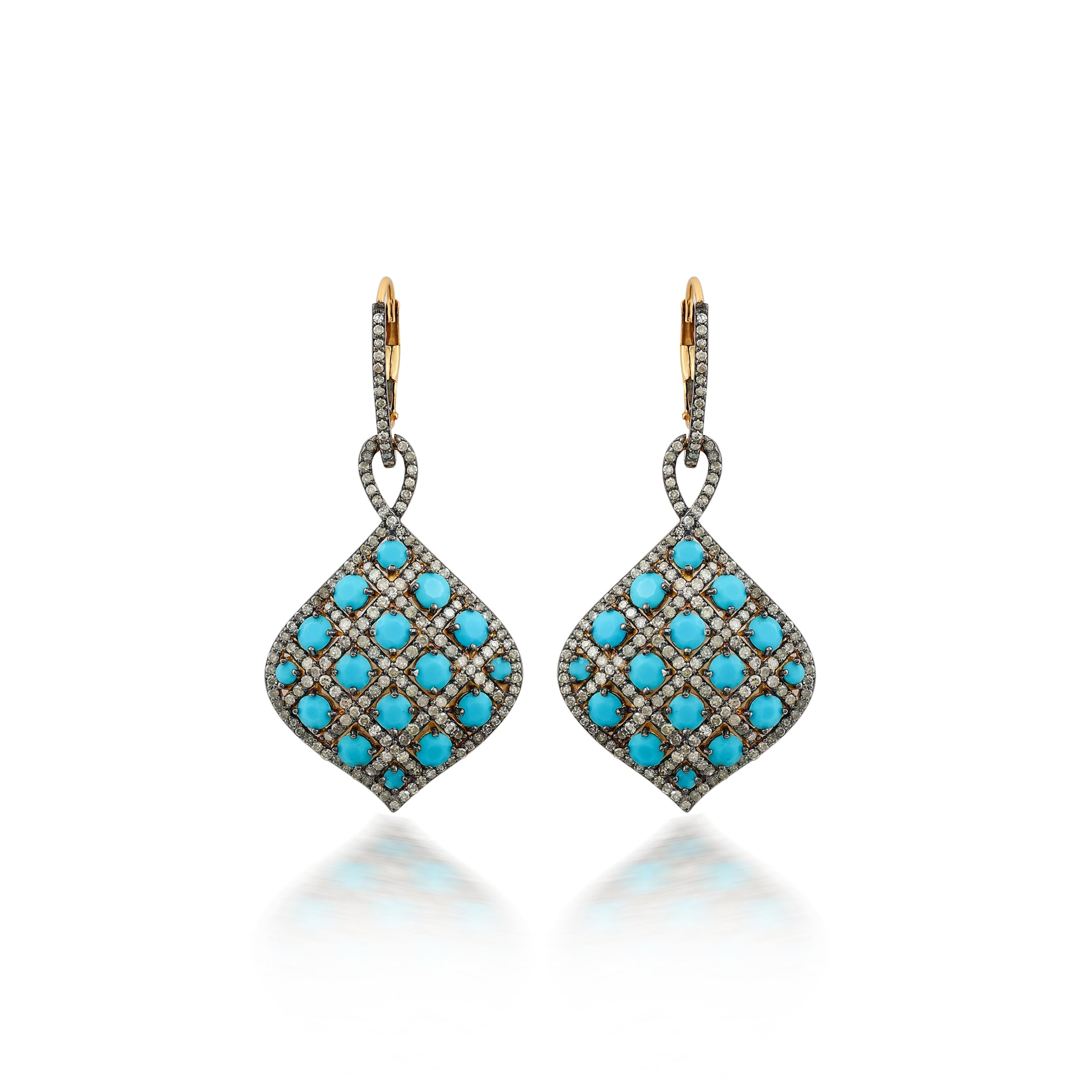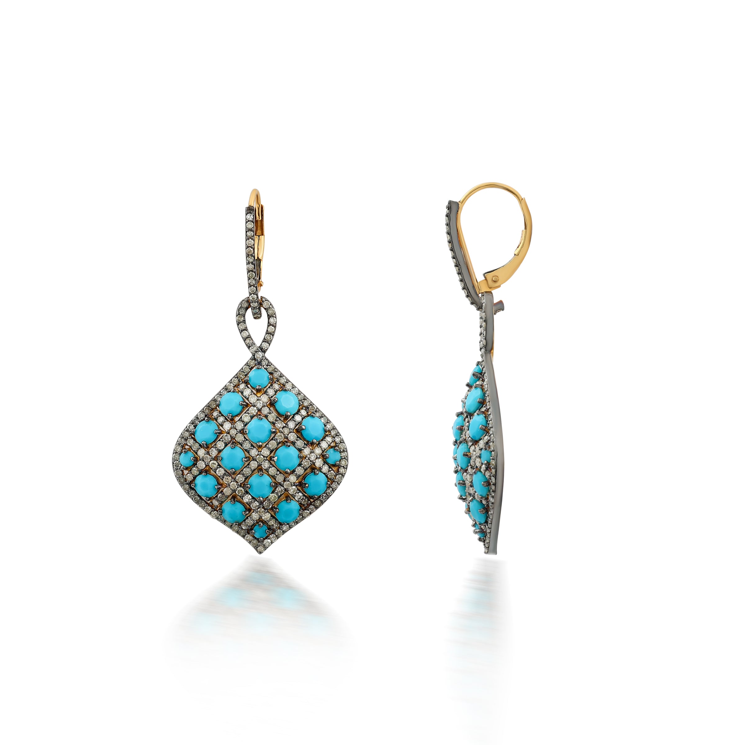 Zahra – Victorian Turquoise & Diamond Drop Earrings