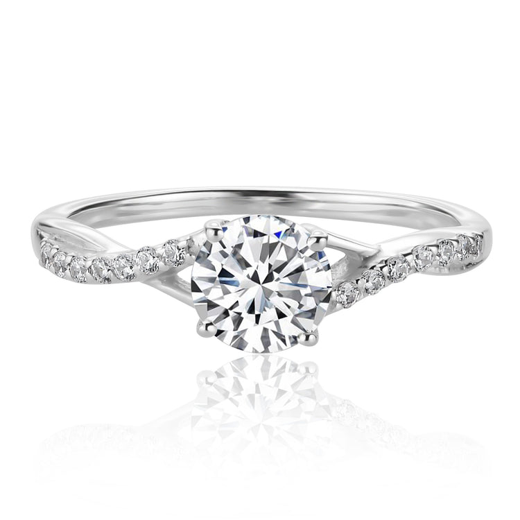 Swiss Blue Topaz Ring with CZ Accents in Sterling Silver