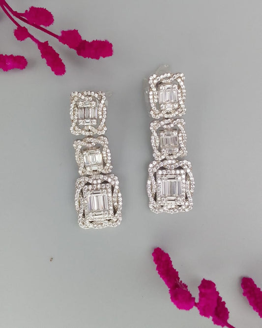 Radiant Silver Stone Golden Studs Earrings: Timeless Glamour in Every Detail