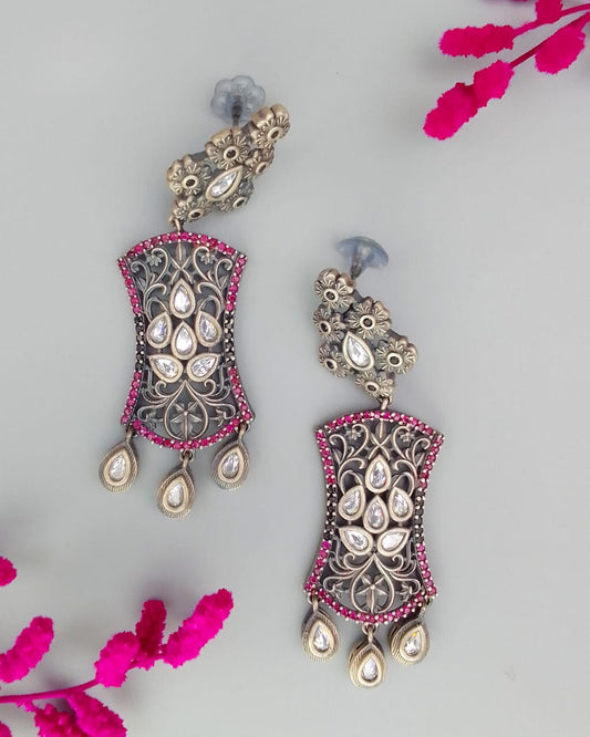 Pink Pearl Silver Chain Dangle Earrings: Embrace Feminine Sophistication