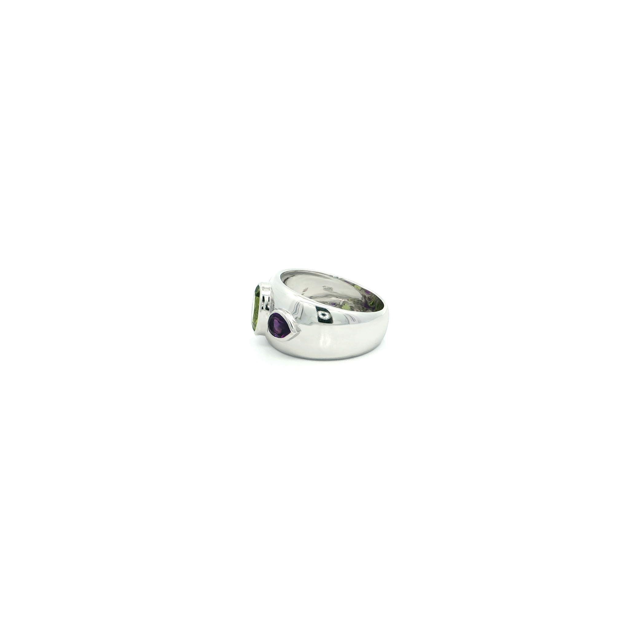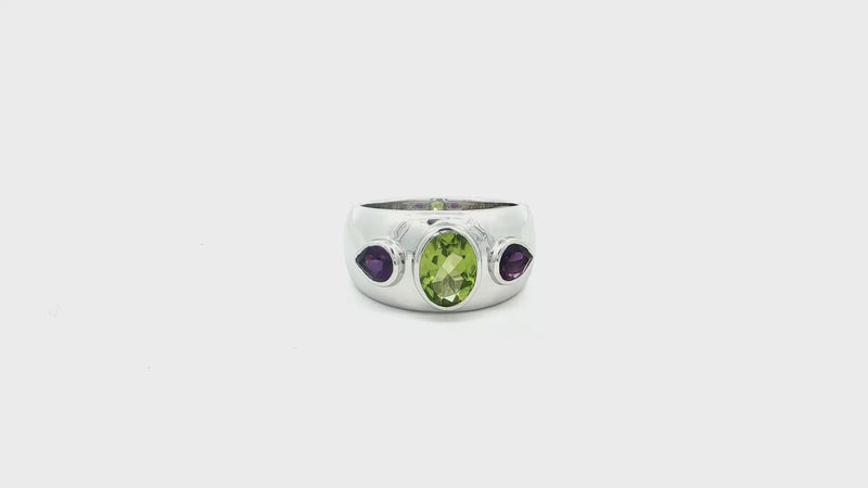 Enhance your jewelry collection with this exquisite multistone ring crafted in lustrous silver. Showcasing an oval-shaped cabochon peridot with a vivid green hue, this ring exudes sophistication. A radiant piece that blends classic design with vibrant gemstone charm.