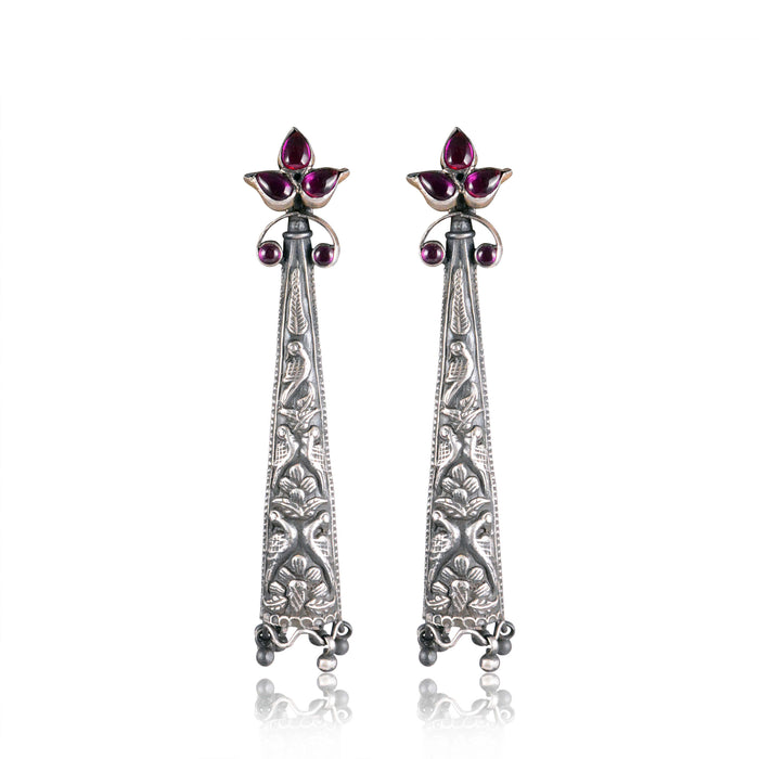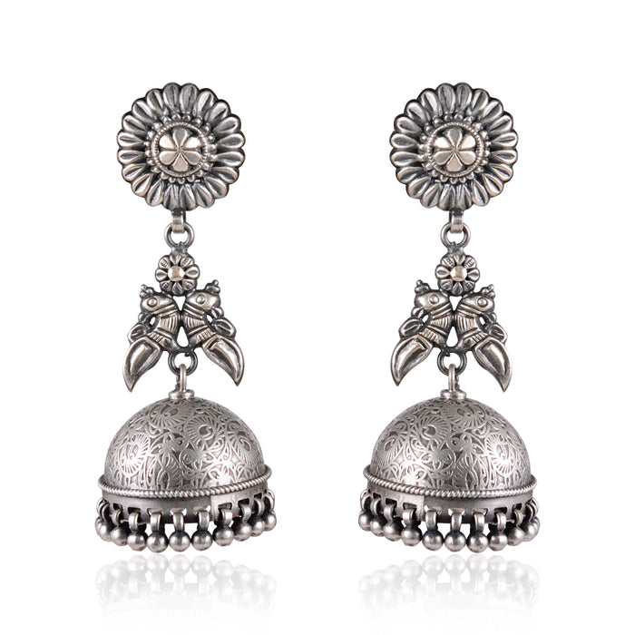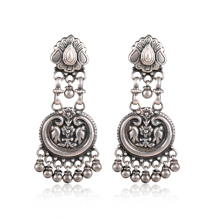 Silver Oxidised Mayur Hanging Earrings
