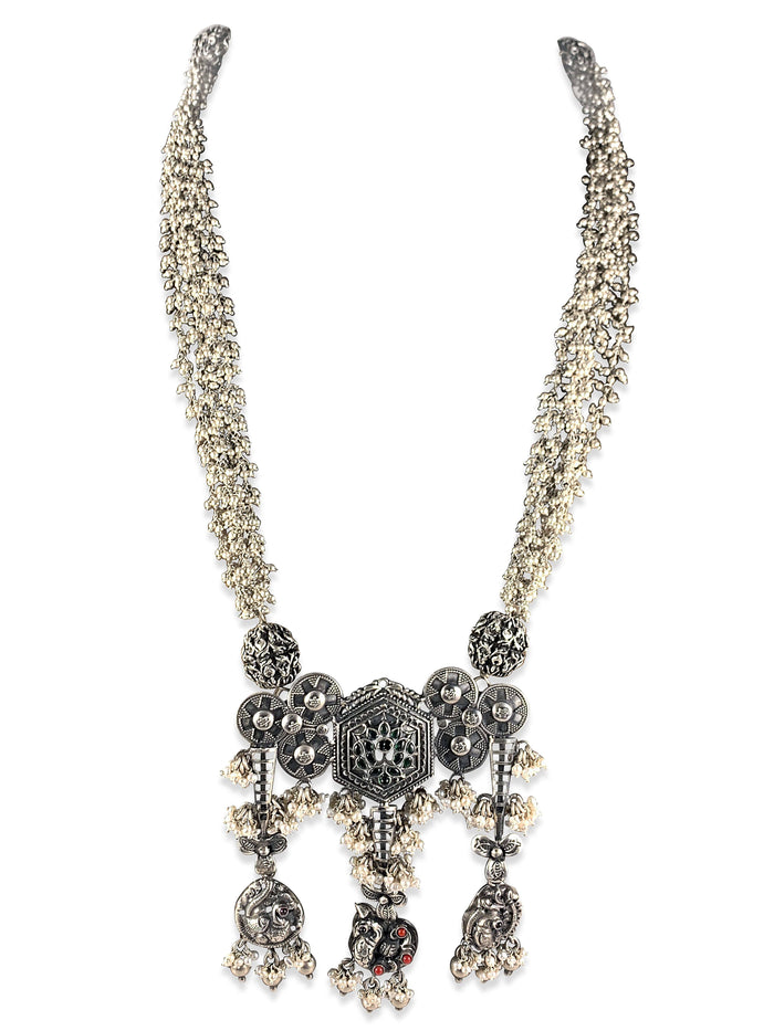 Ethnic 925 Silver Long Tribal Necklace