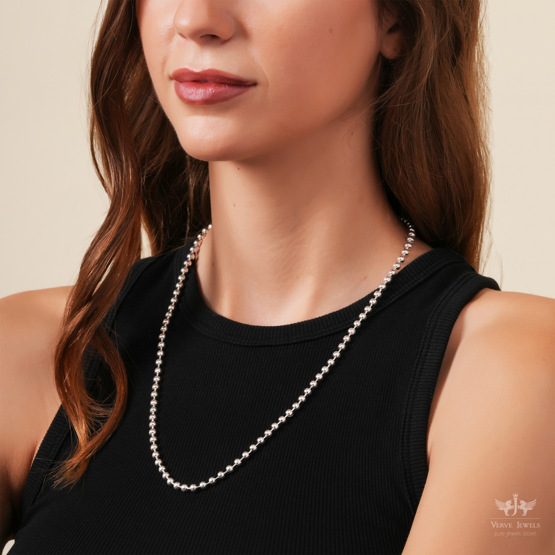 This Silver Ball Necklace is all about simplicity. With the smooth and evenly spaced silver spheres, the ball chain brings a modern flair to the classic design. It's all about the stylish appearance, perfect choice for those who love jewellery that makes them stand out.