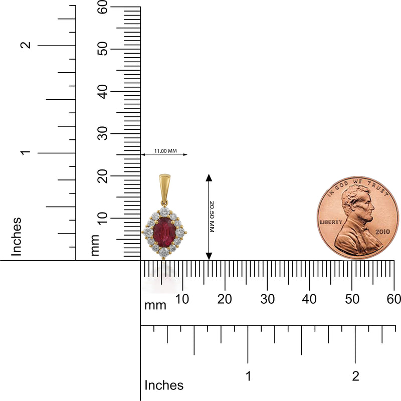 This Amora Pendant is crafted in rich yellow gold; this classic piece blends a unique style with elegance. At its heart, it showcases a ruby gem encircled by a halo of white diamonds. Crafted in rich yellow gold, this piece has a classic charm with modern detailing. Perfect for elevating your everyday looks or adding a romantic glow to the evening ensembles.