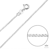 Handcrafted in sterling silver, the luxurious 1 mm box chain is a must-have necklace in your jewellery box. Its iconic geometric cube links are highlighted using diamond cutting on the edges to offer a refined appeal. The Rhodium coating protects the chain against corrosion and tarnish, while the mirror polish finish adds glow to each link. Make this alluring chain your everyday jewellery for work, shopping, and casual outings. Pair it with a minimal pendant or leave it flawless on your neckline to accentuate it naturally. Suitable for both men & women.