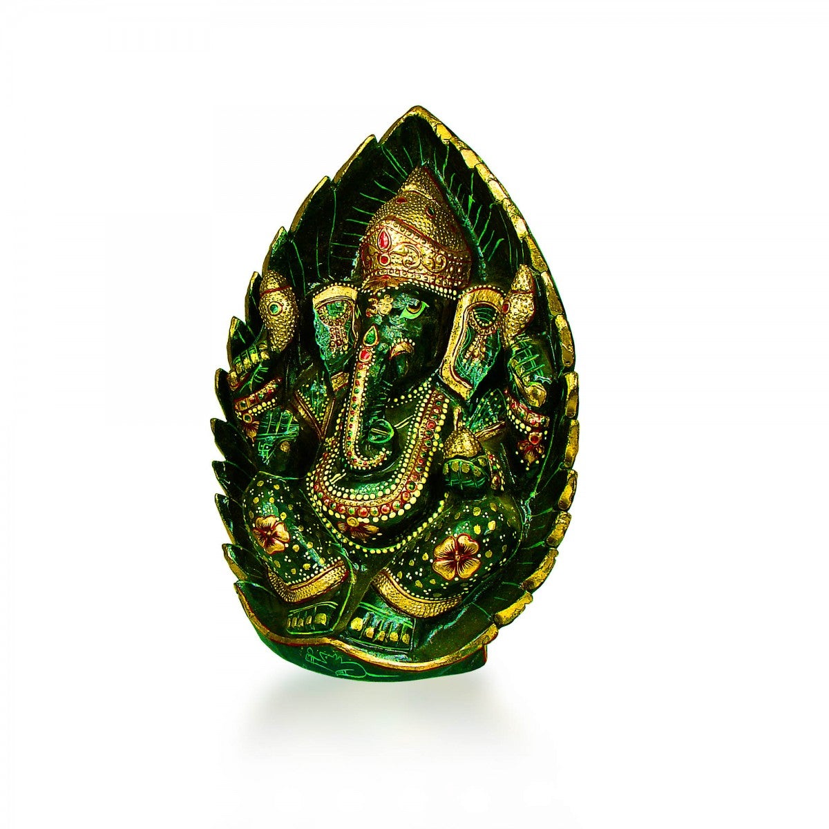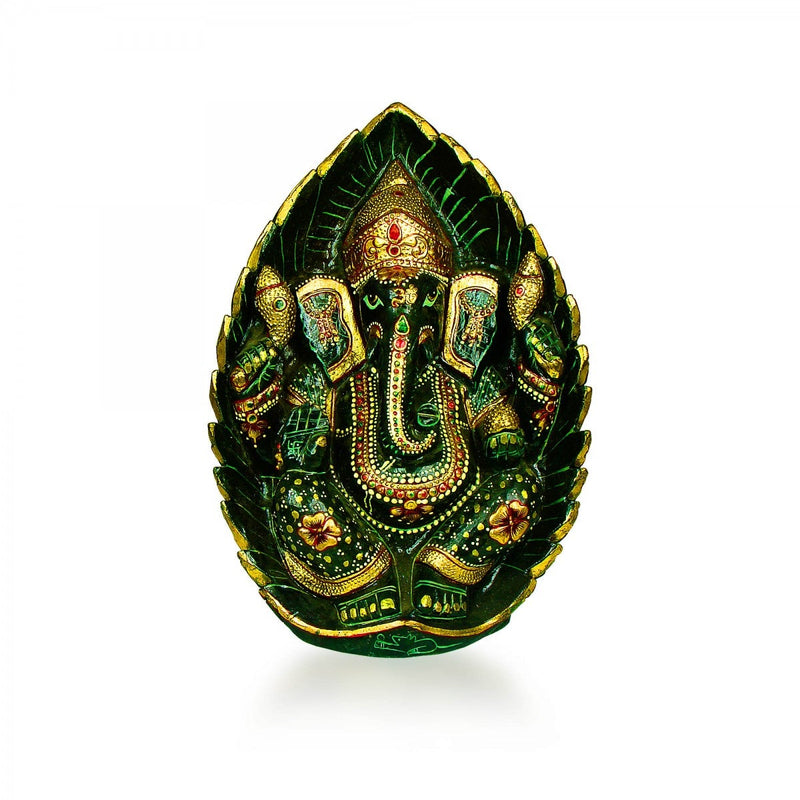 Creative Idol of Lord Ganesha Carved on Dark Green Jade Stone