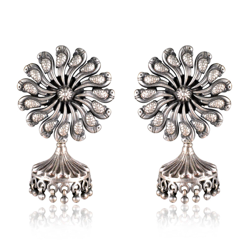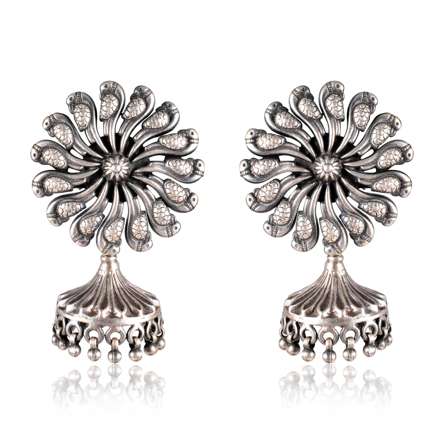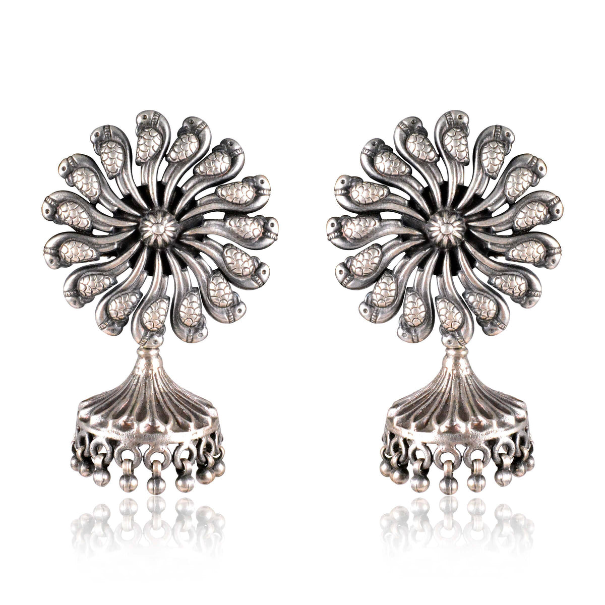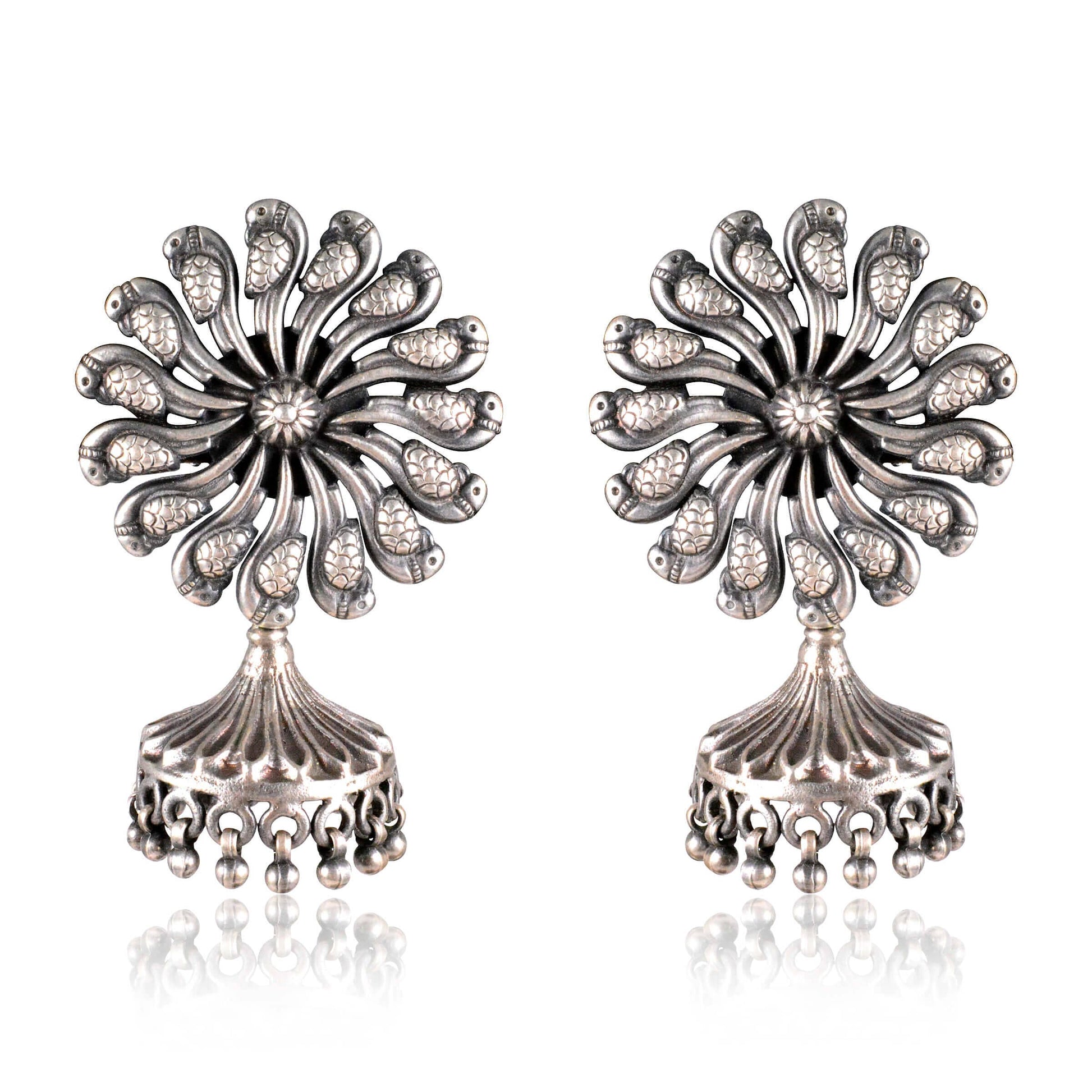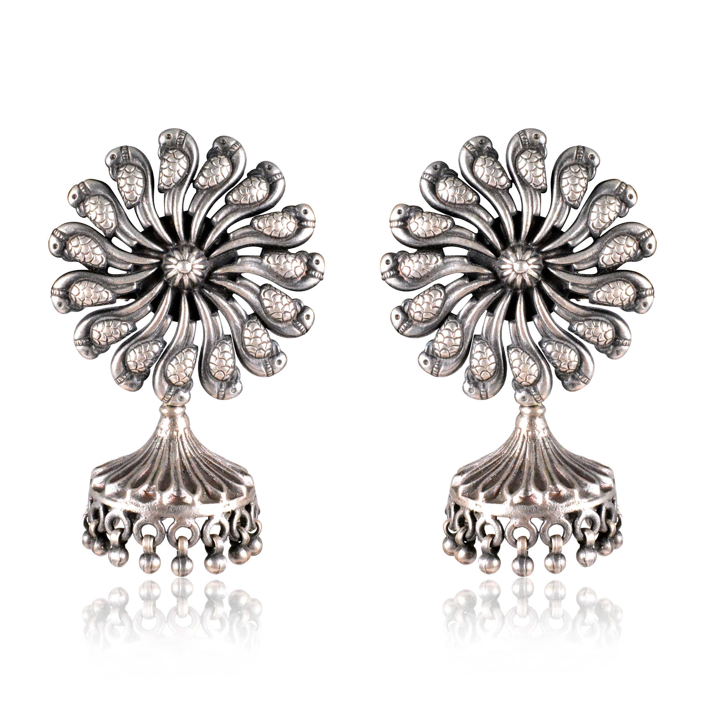 Silver Mayuri Jhumki is crafted with lead-free and nickel-free international standards. This earring has made of 92.5 sterling silver along with oxidized finish